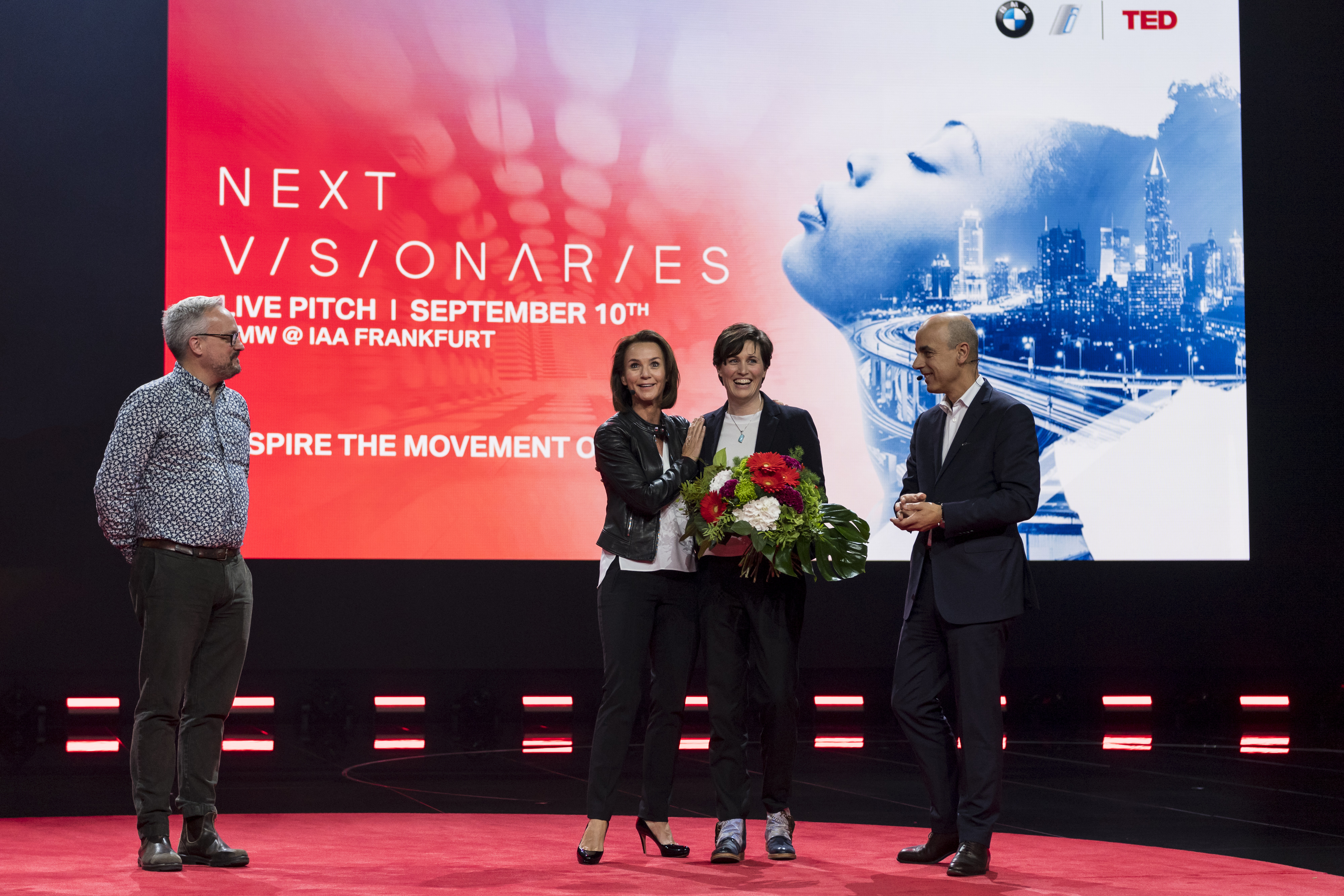 "Next Visionaries" contest BMW i with TED. Awards ceremony with Sandra Phillips (winner) and Hildegard Wortmann, Nicolas Peter (BMW). Far left: Doug ...