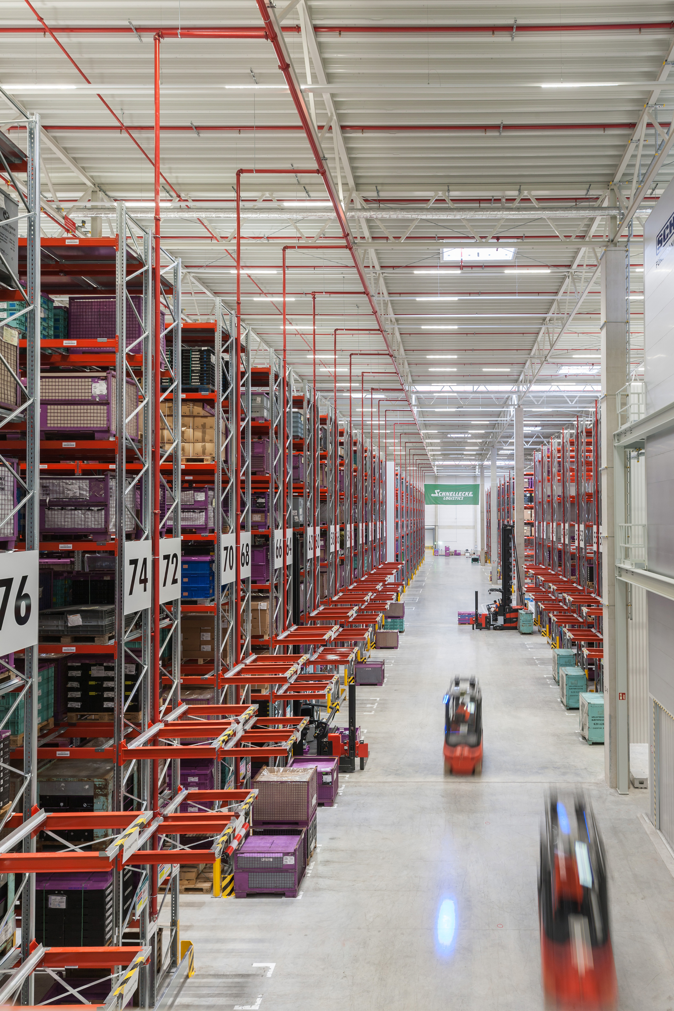 Versorgung der Komponentenfertigung im BMW Group Werk Landshut mit Produktionsmaterial aus dem Hochregallager des Versorgungszentrums.