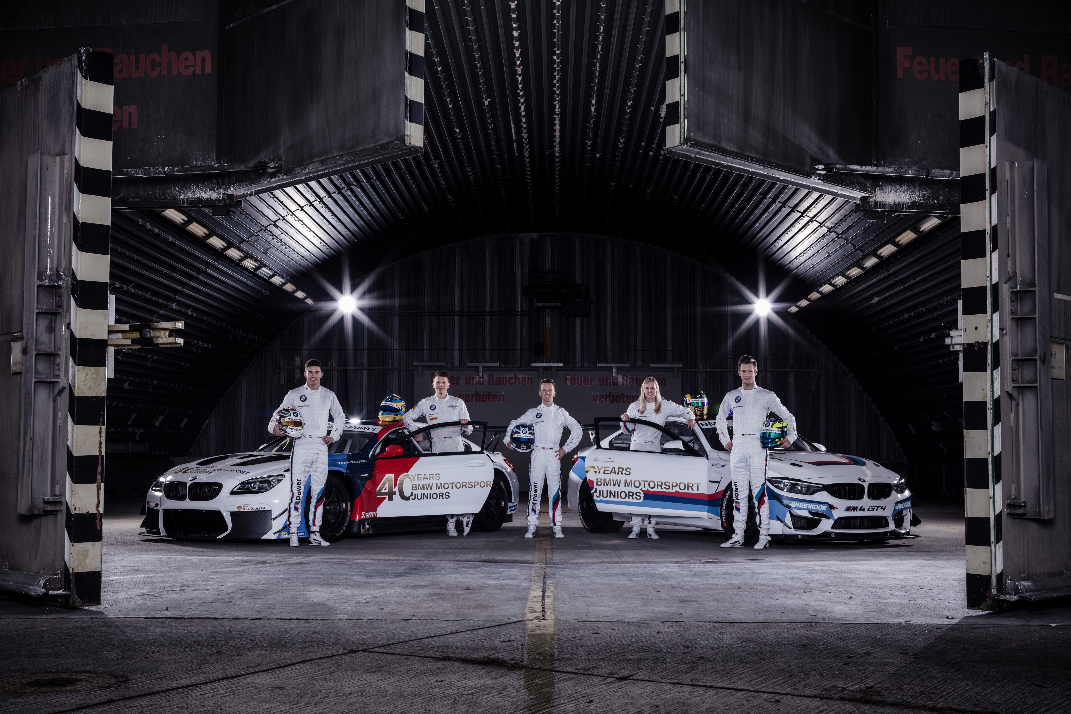 Maisach (GER), 20th November 2017. BMW Motorsport Junior Programme, anniversary, 40 years, event, shooting, BMW M6 GT3, BMW M4 GT4, Nico Menzel, Ricky Collard, Beitske Visser, Mikkel Jensen, Dennis Marschall.