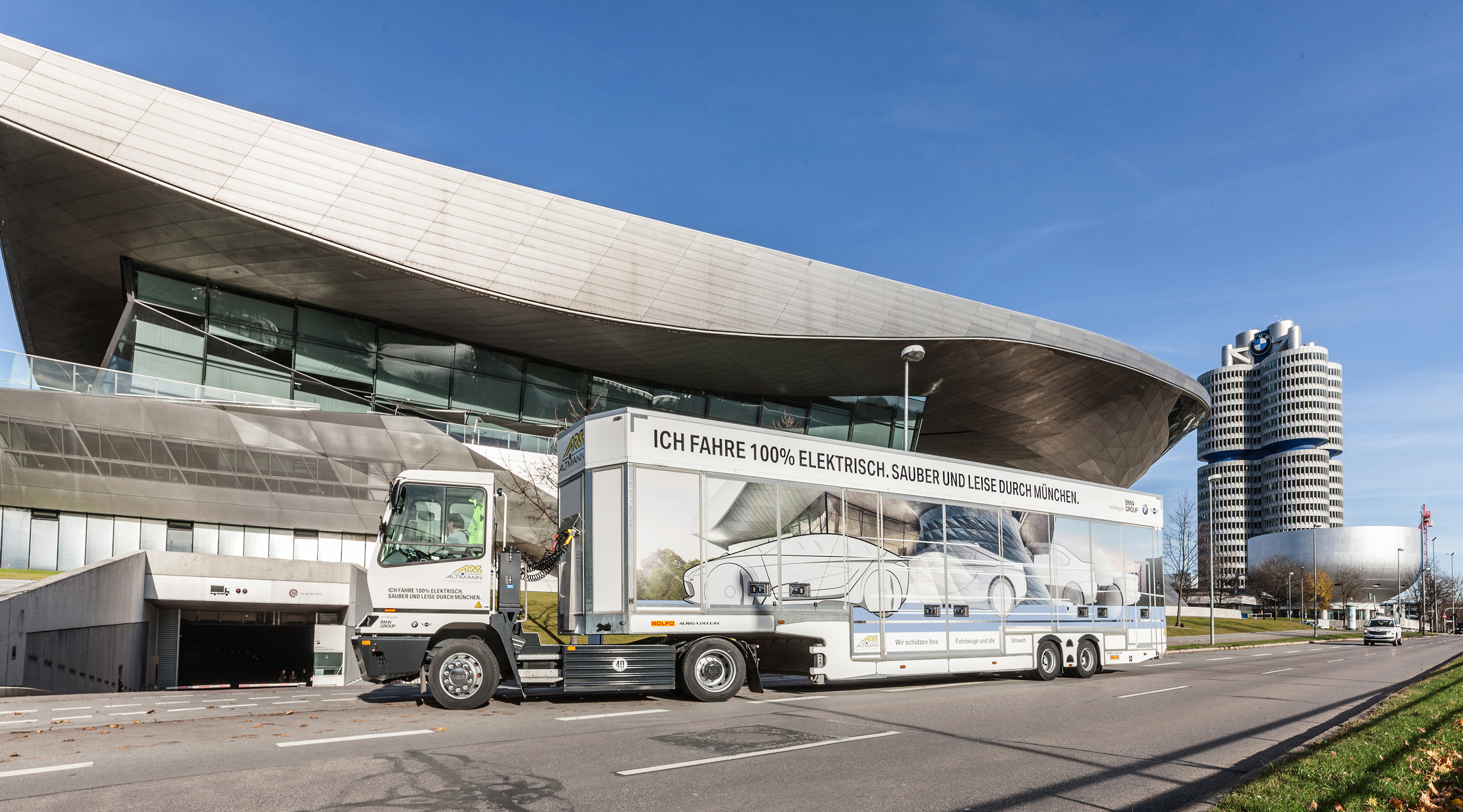 An electric truck transporting vehicles to BMW Welt Munich (12/2017)