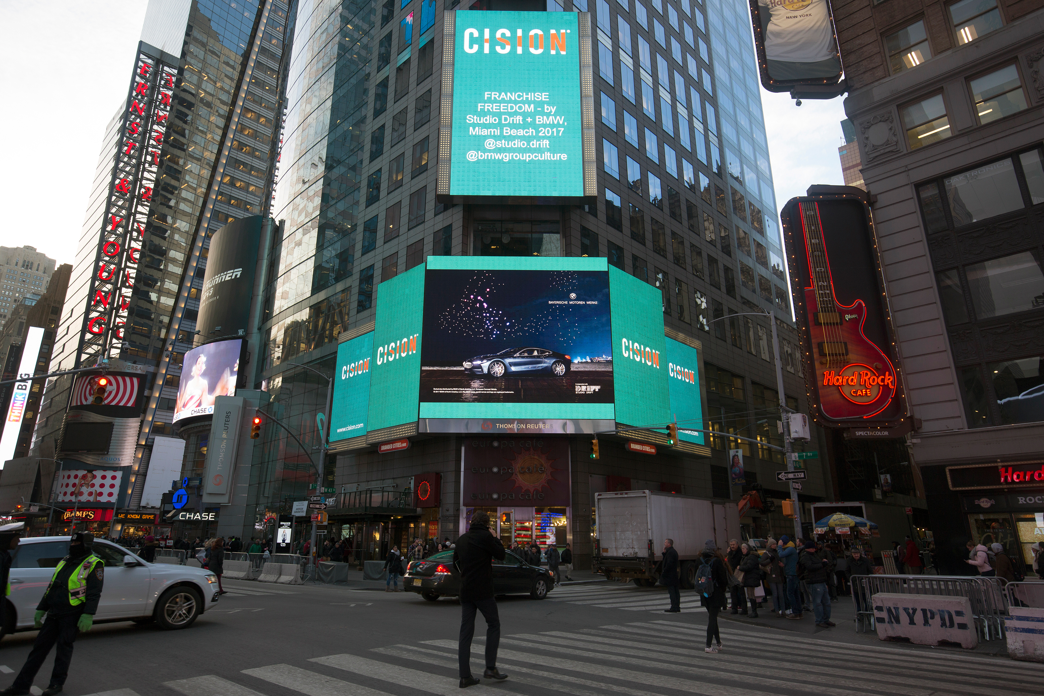 FRANCHISE FREEDOM – a flying sculpture by Studio Drift in partnership with BMW” at the Reuters Sign in New York City's Times Square (12/2017)