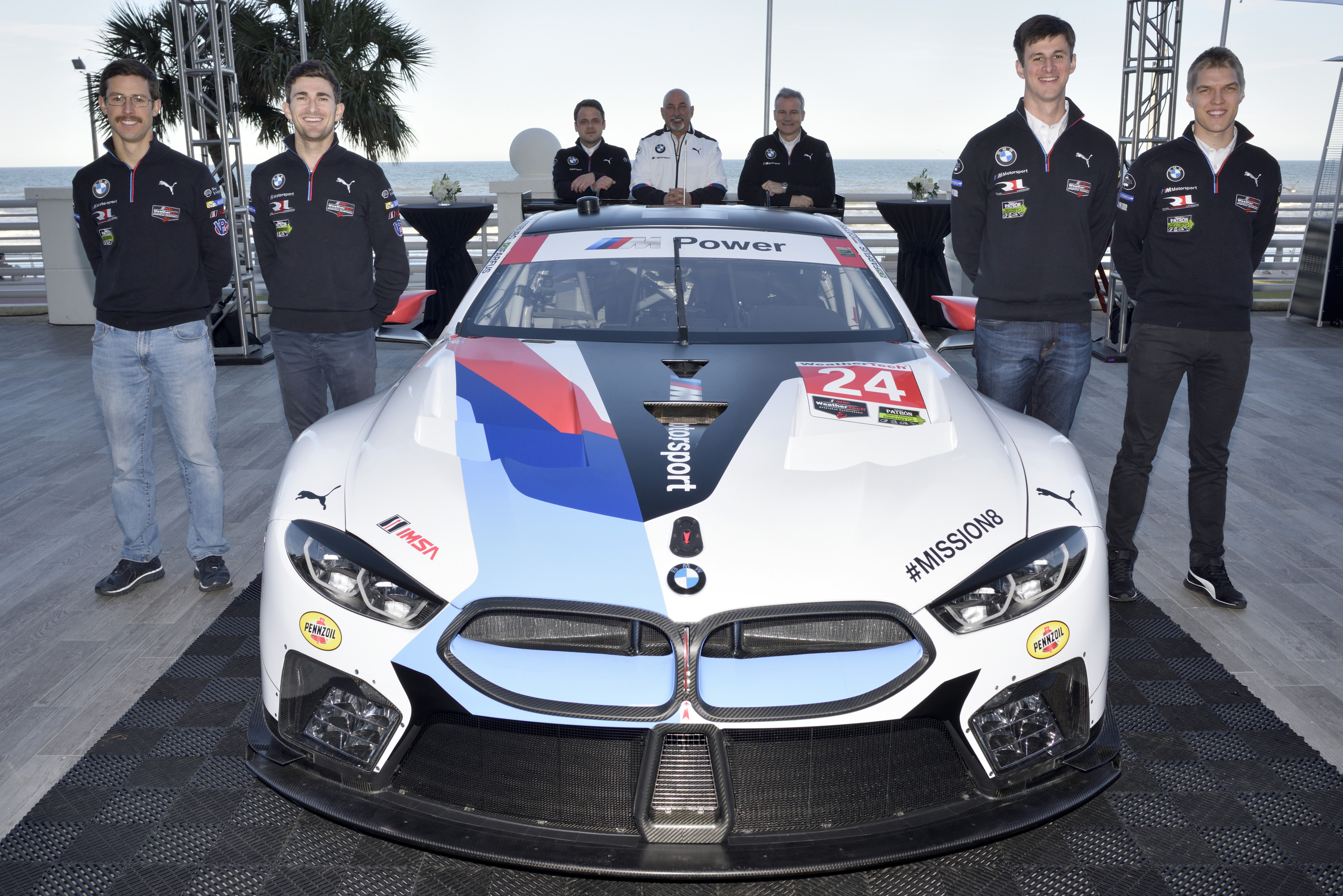 Daytona (USA), 24th January 2018. BMW M8 GTE, presentation, Jens Marquardt, Bobby Rahal, Victor Leleu, Alexander Sims, Connor De Phillippi, John Edwards, Jesse Krohn.