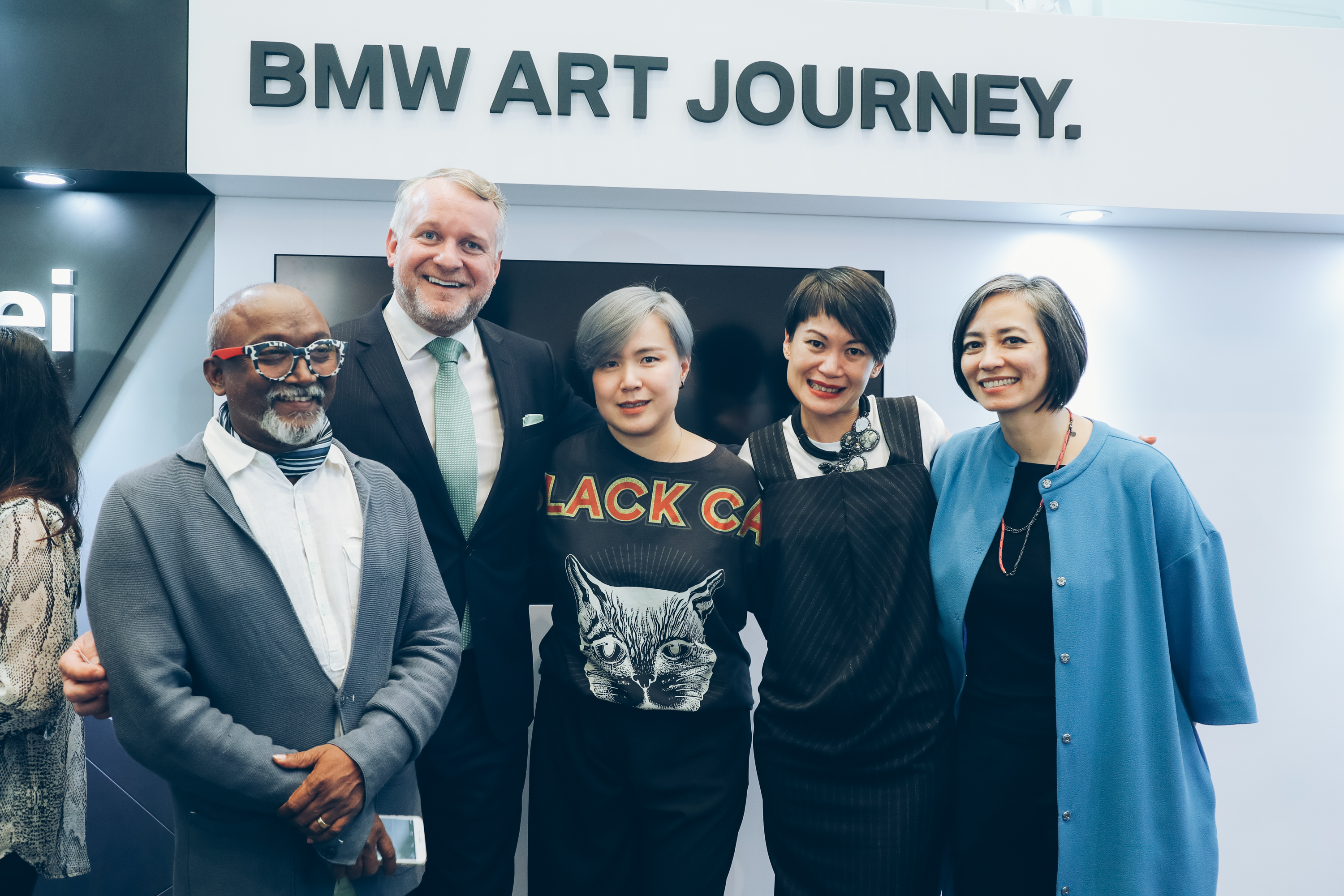 Shortlist Announcement of BMW Art Journey at Art Basel in Hong Kong, March 28, 2018, Dr Thomas Girst (Head of BMW Group Cultural Engagement), Cao Fei (Artist of BMW Art Car #18), Bose Krishnamachari (President Kochi-Muziris Biennale, India), Adeline Ooi (Director Asia, Art Basel), Pauline J. Yao (Curator of Visual Art, M+, Hong Kong). (03/2018)
