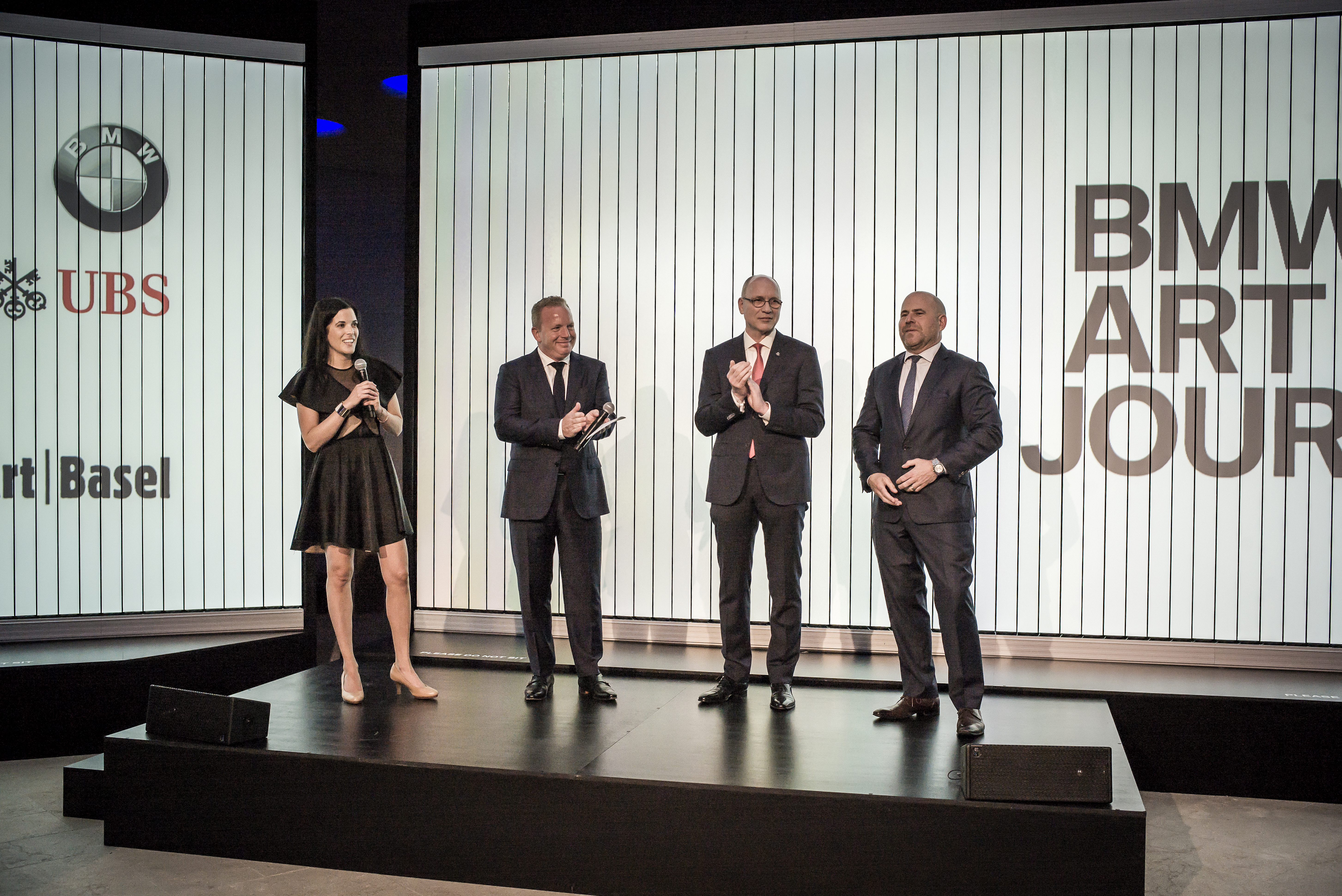 BMW Art Journey Cocktail Reception at UBS Forum on June 12, 2018, f.l.t.r.: Hedwig Solis-Weinstein (Head of BMW Brand Cooperations, Arts & Design), Jean-Philippe Parain (Senior Vice-President Sales Region Europe, BMW Group), Alain Robert (Executive Vice Chairmain of Global Wealth Management, UBS) and Marc Spiegler (Art Basel Global Director). (c) BMW AG (06/2018)