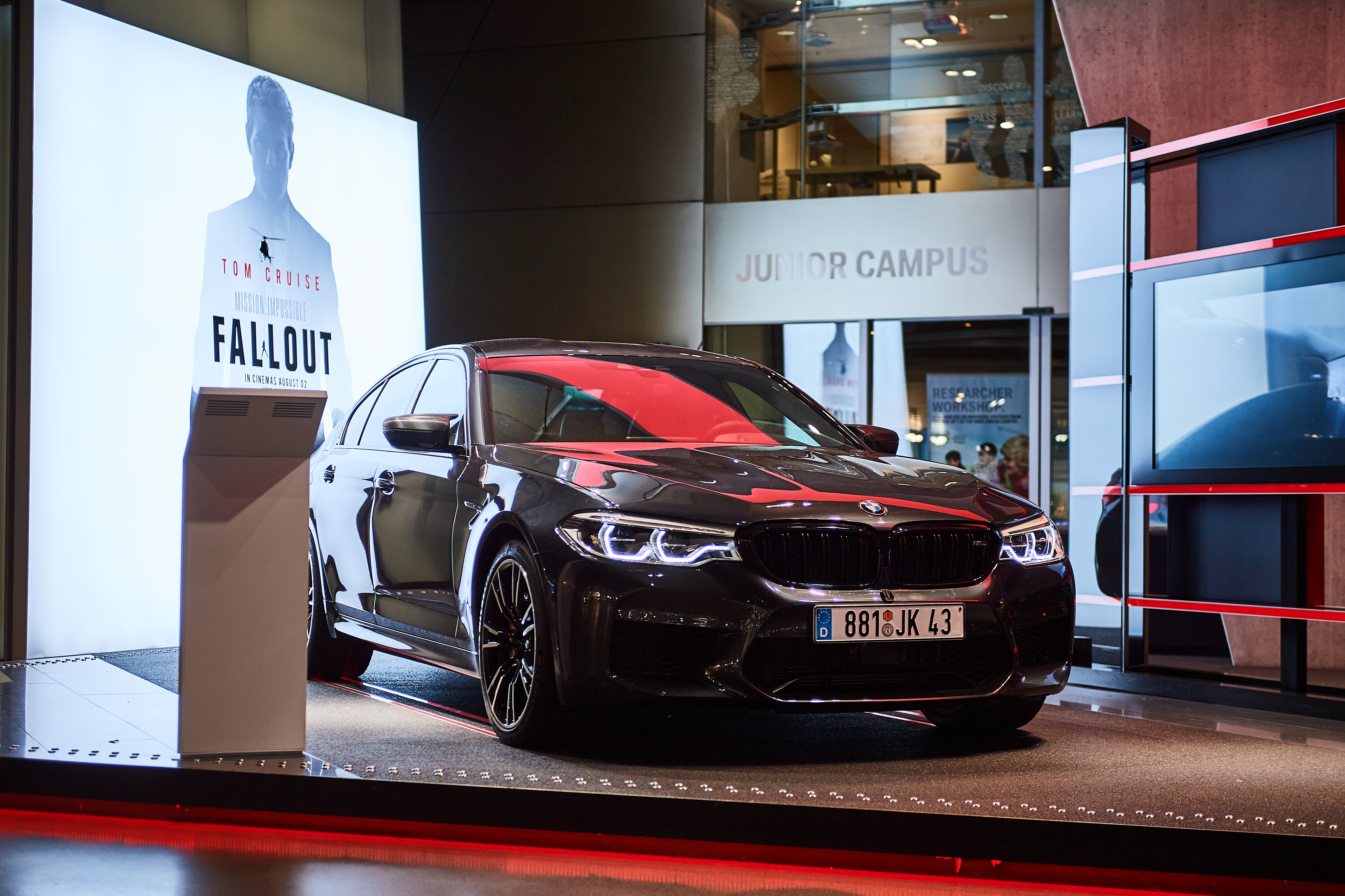 On display until end of September at BMW Welt: Models from the latest “Mission: Impossible – Fallout” movie plus the BMW M5 E28. (08/2018)