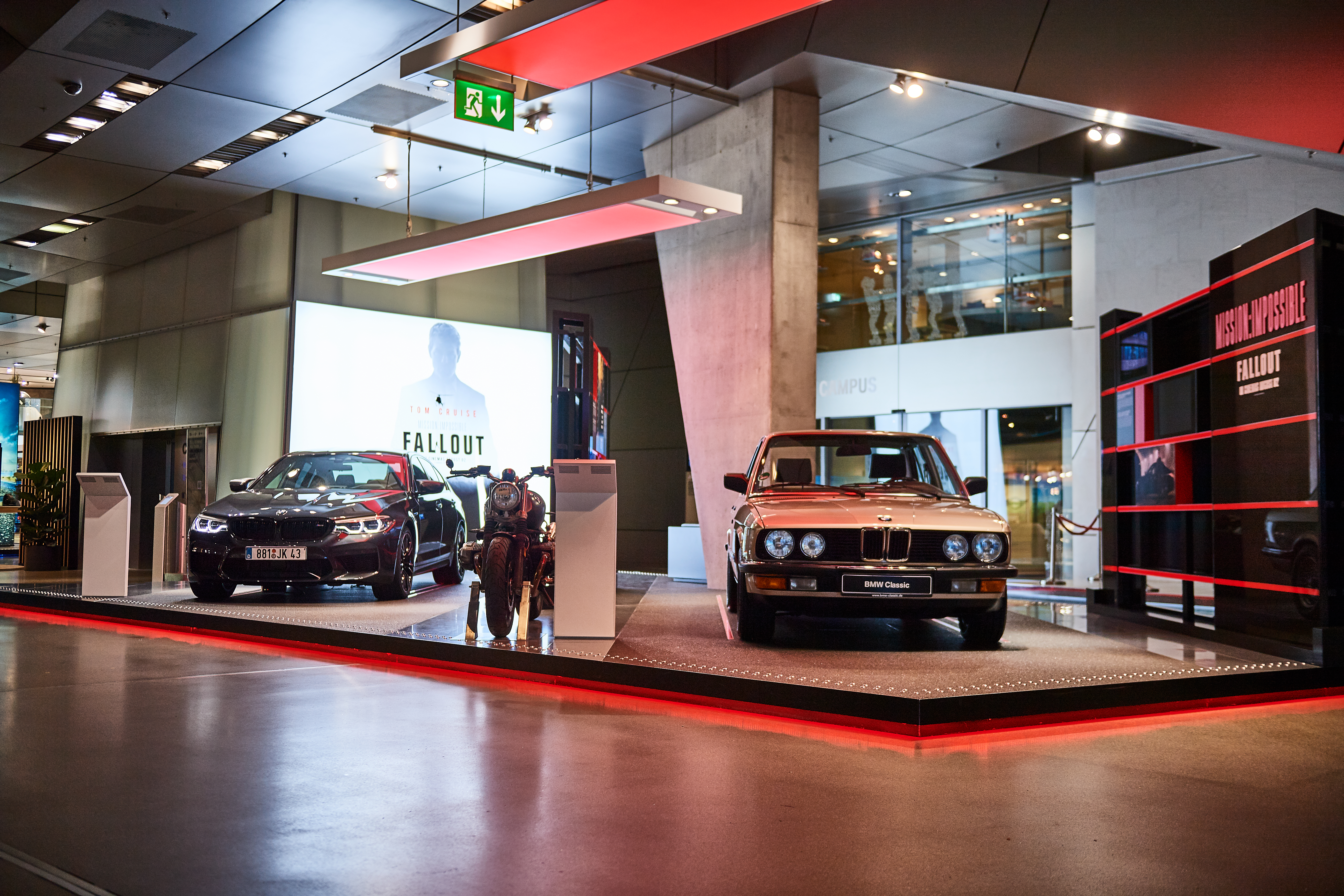 On display until end of September at BMW Welt: Models from the latest “Mission: Impossible – Fallout” movie plus the BMW M5 E28. (08/2018)