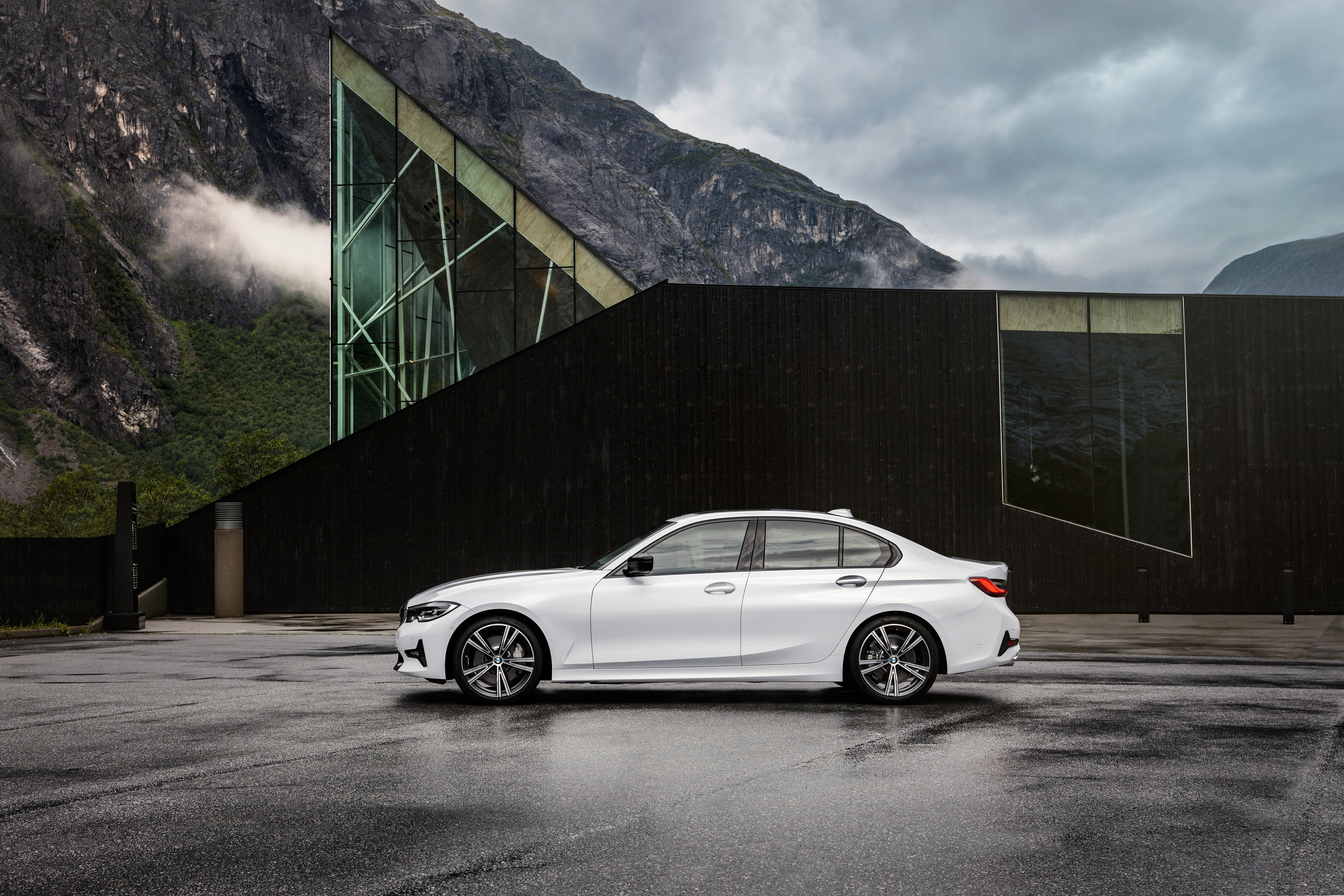 The all-new BMW 3 Series Sedan, Model Sport Line, Mineral white metallic, Rim 19” Styling Individual 793i (10/2018).