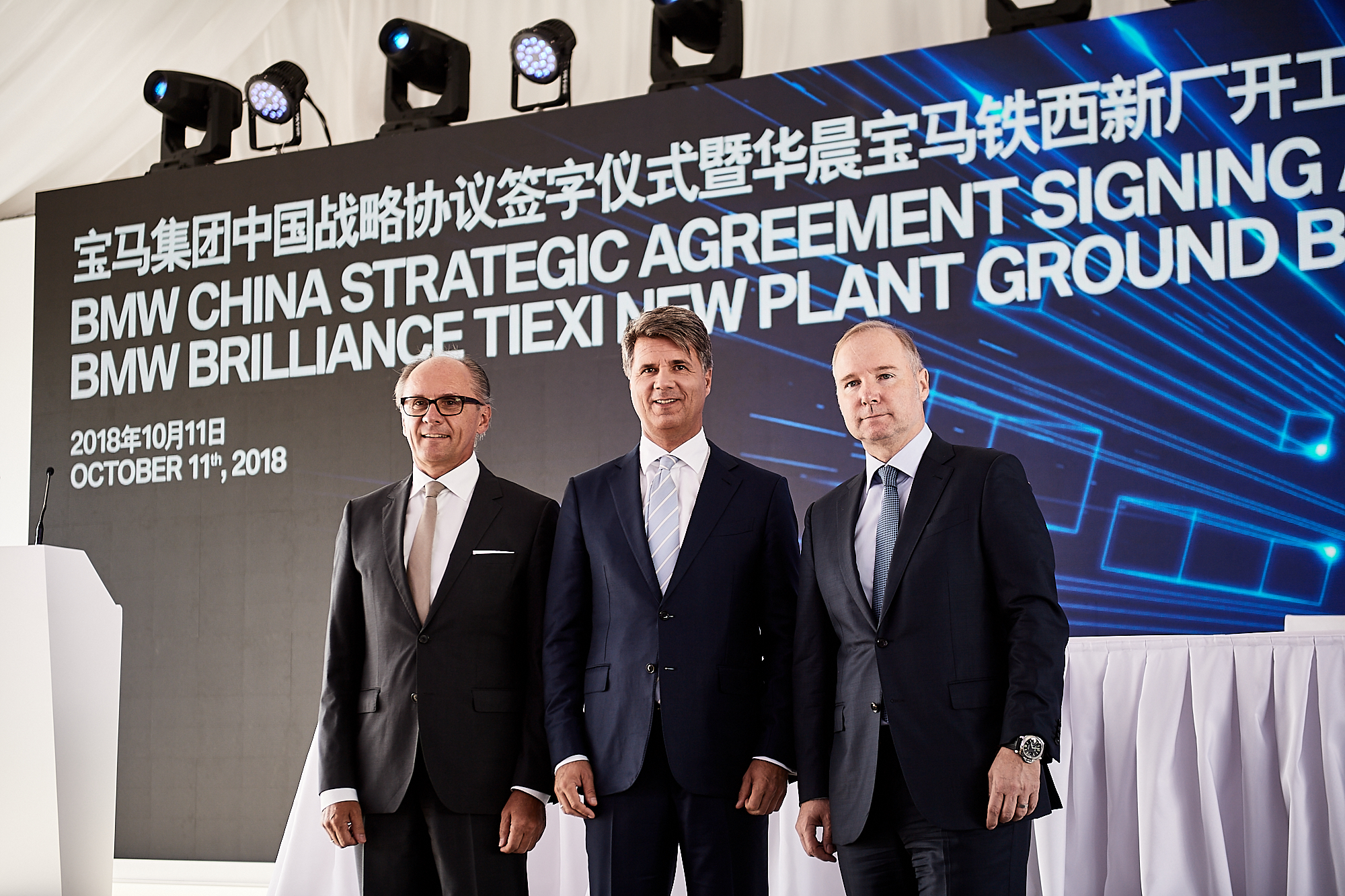 BMW China strategic contract signing, groundbreaking for the new Tiexi plant and 15th anniversary of the joint venture BMW Brilliance Automotive (BBA) in Shenyang / China, from left to right: Dr. Johann Wieland (President of BBA), Harald Krüger (Chairman of the Board of Management of BMW AG), Jochen Goller (President and CEO of BMW Group Region China)