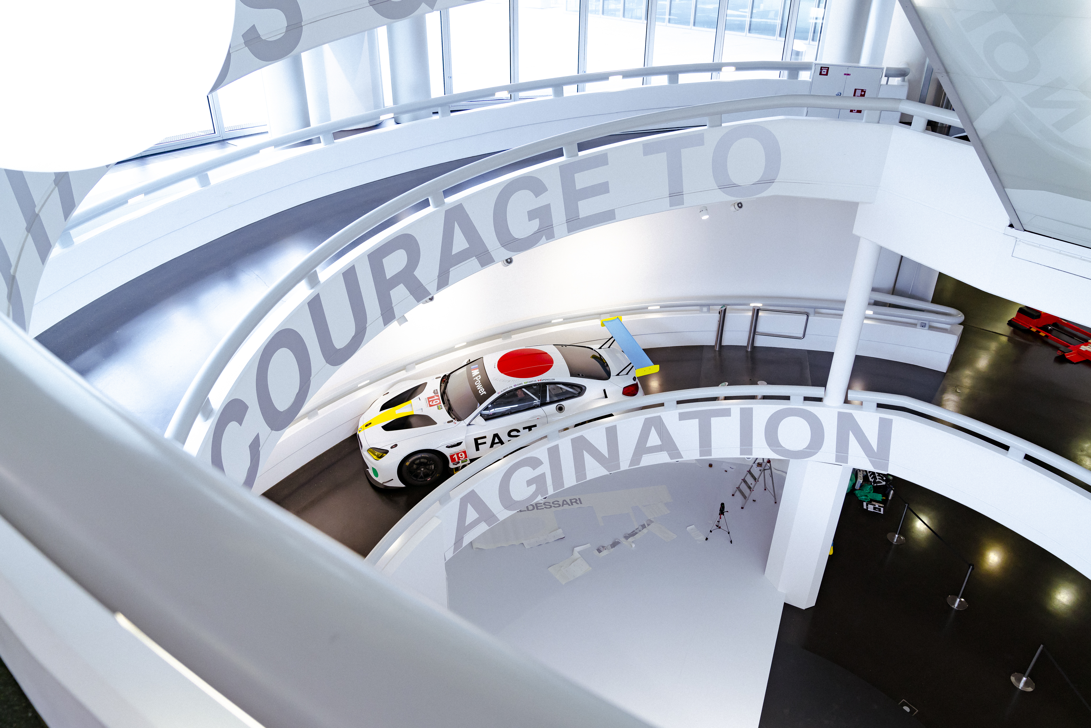 Special exhibition at the BMW Museum „BMW Art Cars | How a vision became reality.“ Setup. BMW Art Car #19 BMW M6 GTLM of John Baldessari. (10/2018)