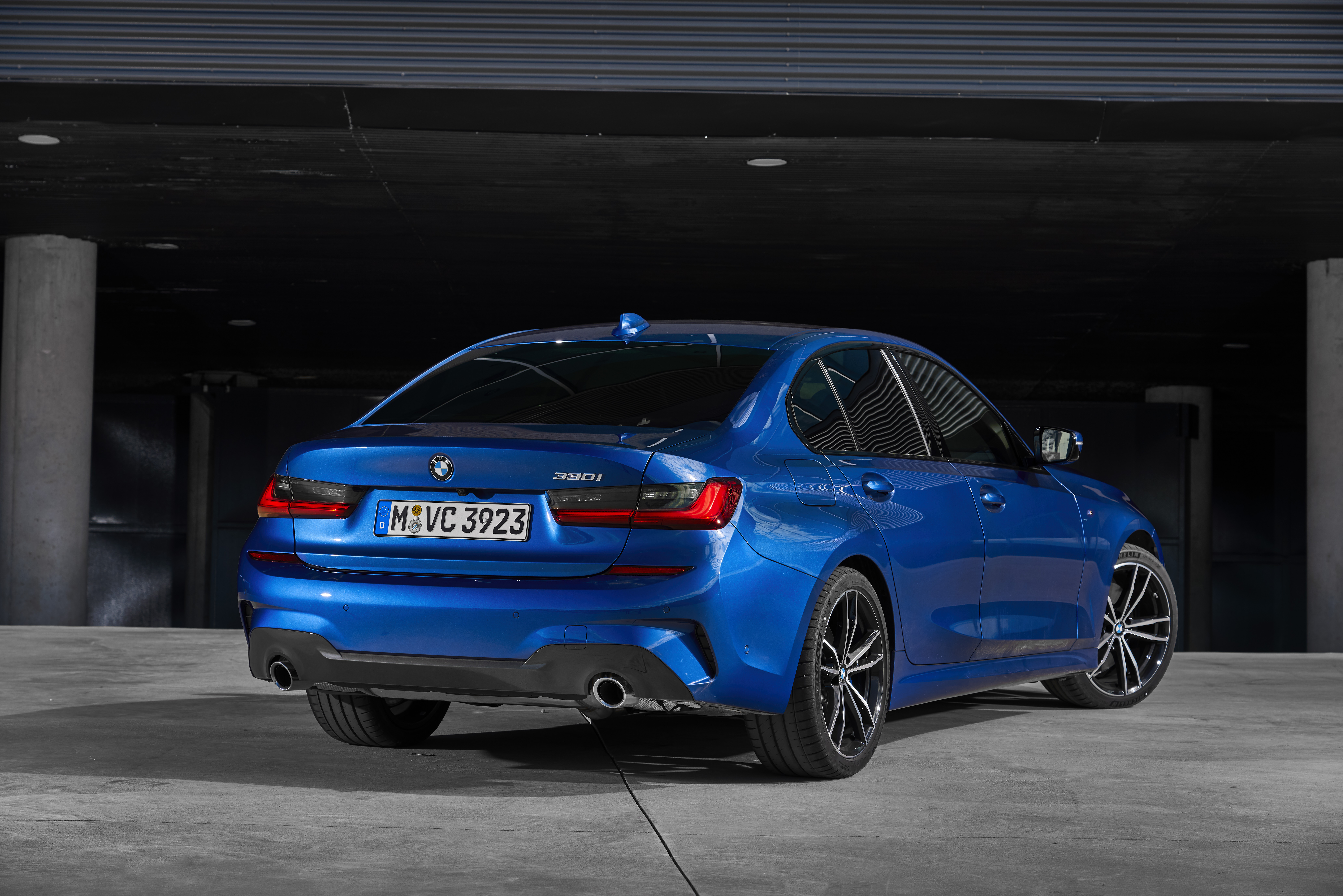 The all-new BMW 330i, Model M Sport, Portimao blue metallic, Rim 19” Styling 791 M (12/2018).