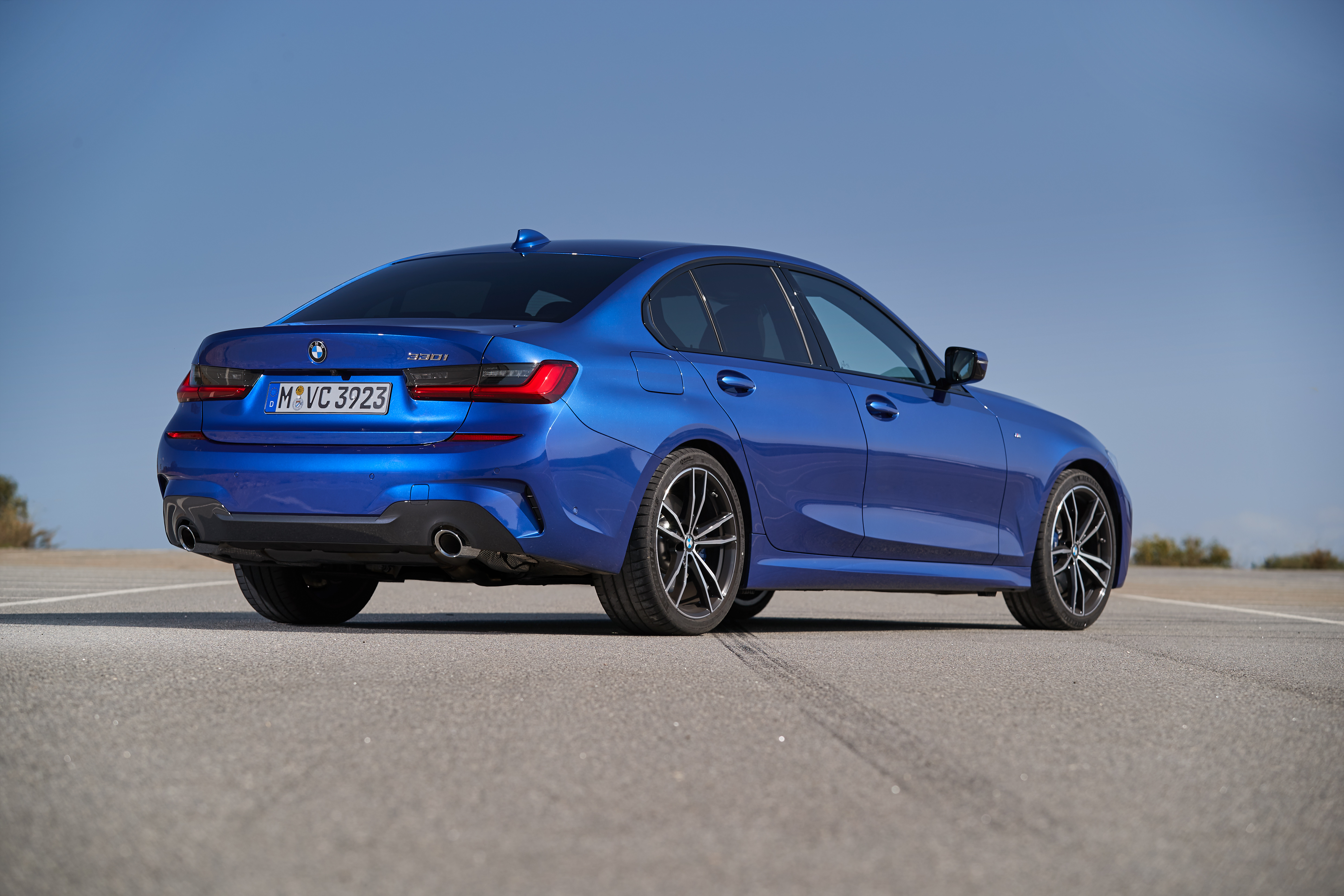The all-new BMW 330i, Model M Sport, Portimao blue metallic, Rim 19” Styling 791 M (12/2018).