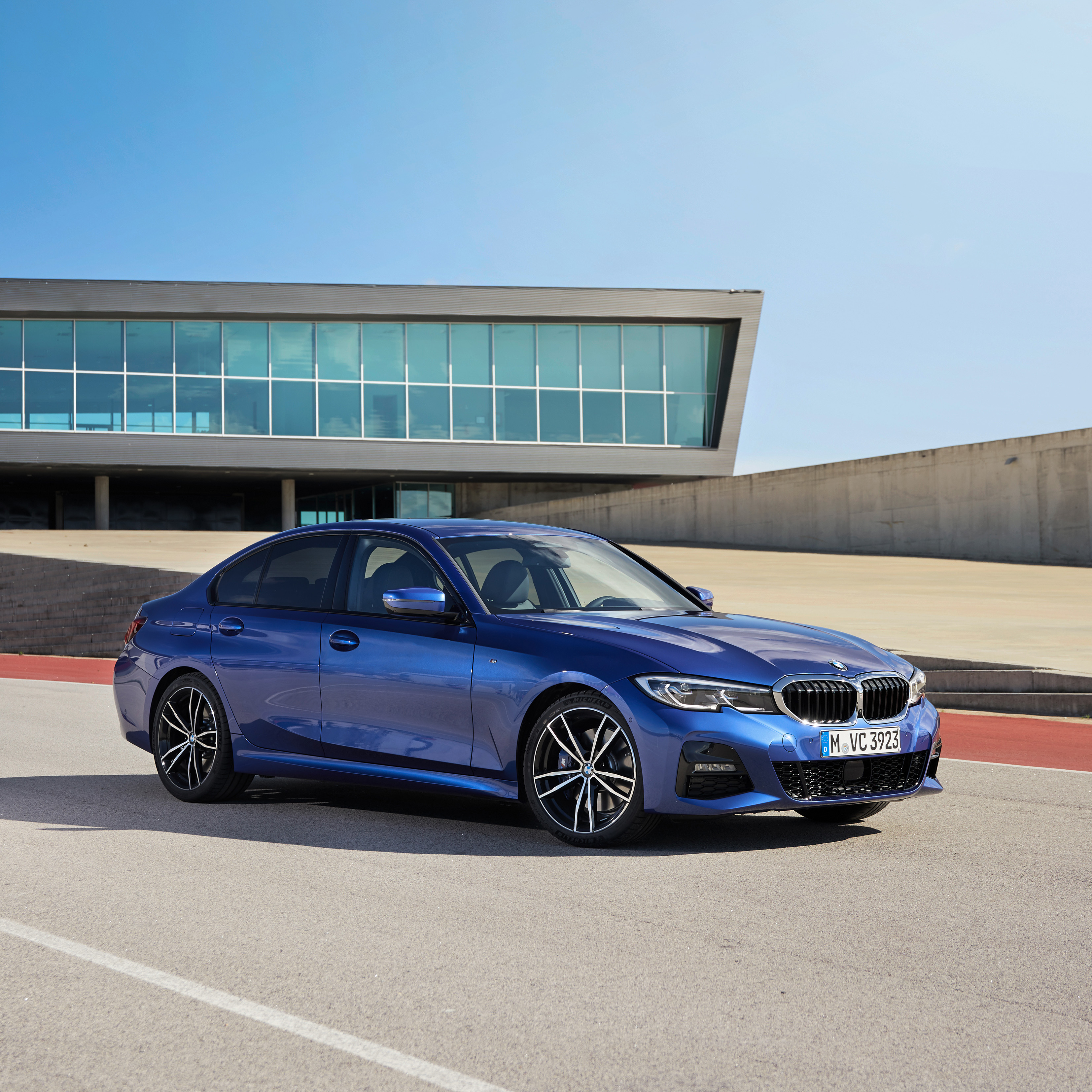 The all-new BMW 330i, Model M Sport, Portimao blue metallic, Rim 19” Styling 791 M (12/2018).
