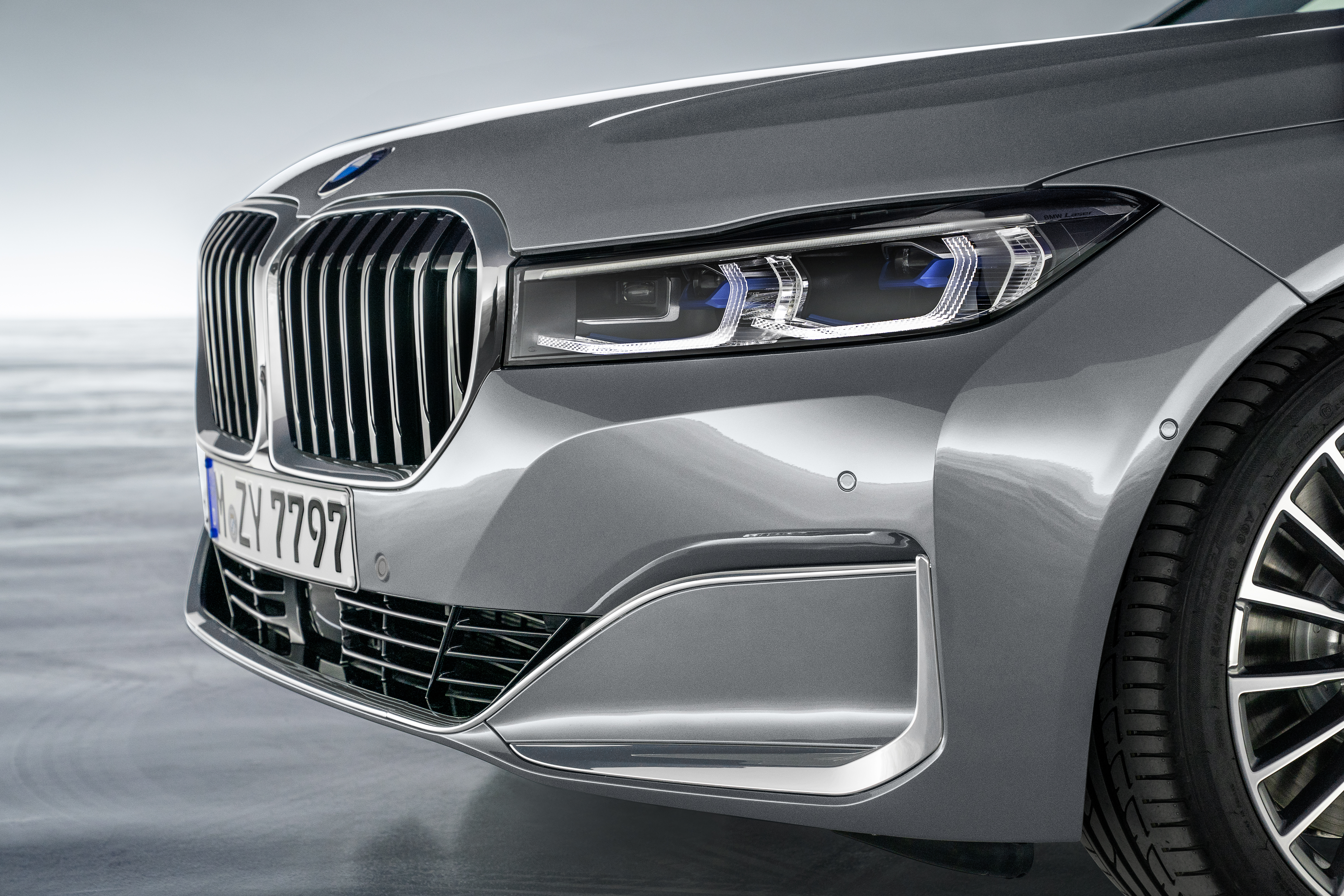 The new BMW 7 Series in painting Bernina Grey Amber Effect metallic with light-alloy wheel Styling 777 and leather “Nappa” with extended quilting in ...