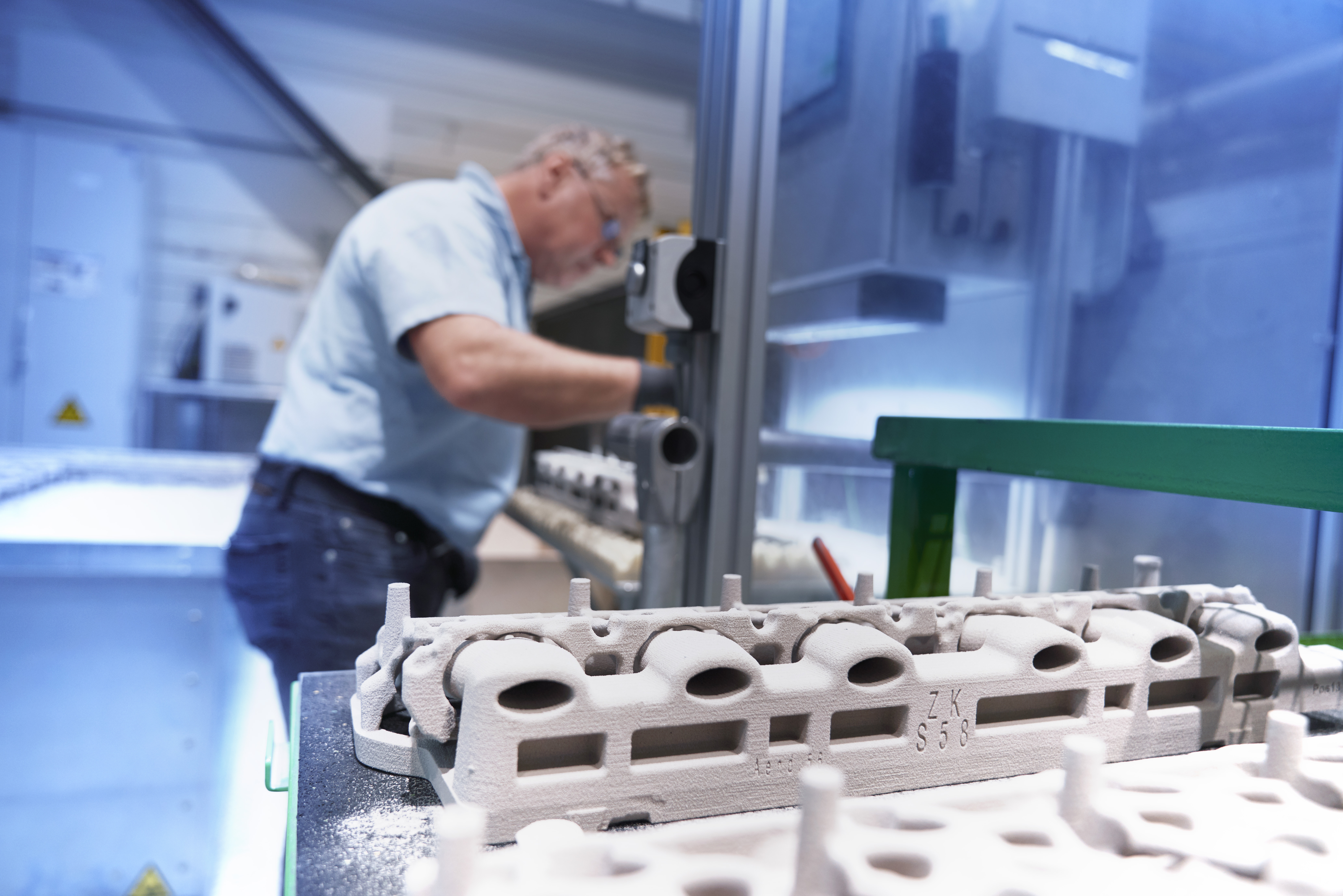 Production in 3D printing process of the sand core for the water jacket of the all-new High-Performance M TwinPower Turbo 6-cylinder petrol engine ...