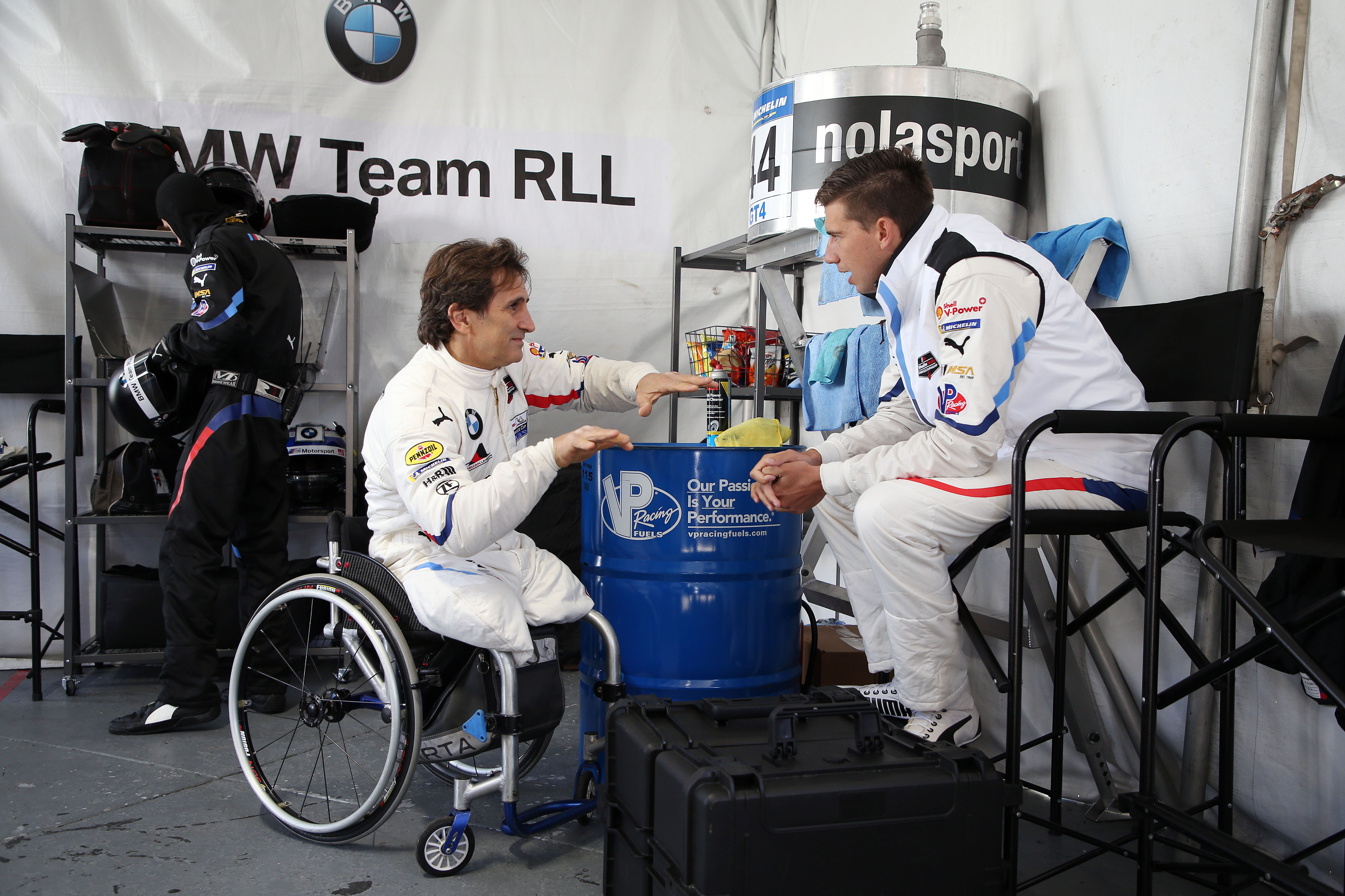 Daytona, 25th January, IMSA WeatherTech Sportscar Championship 2019, Rolex 24 at Daytona, Daytona International Speedway, Daytona, FL (USA). Alessandro Zanardi (ITA) and Chaz Mostert (AUS), BMW M8 GTE #24, BMW Team RLL pit.