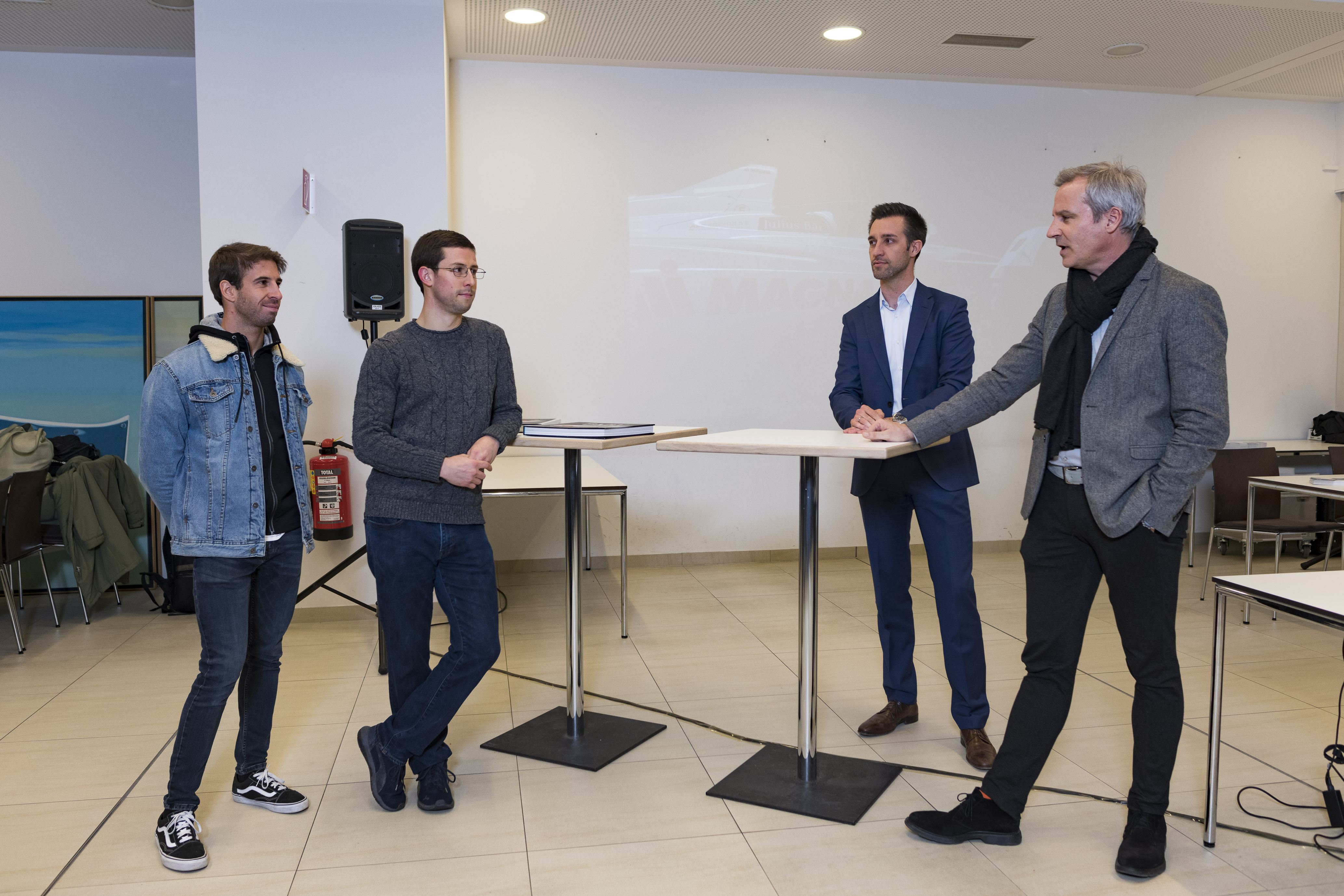 Munich (GER), 11th February 2019. BMW i Motorsport, BMW i Andretti Motorsport, Competence Centre Development Electric Powertrain, António Félix da Costa (BMW works driver), Alexander Sims (BMW works driver), Nicolai Martin (Head of Development Electric Powertrain), Jens Marquardt (BMW Motorsport Director)