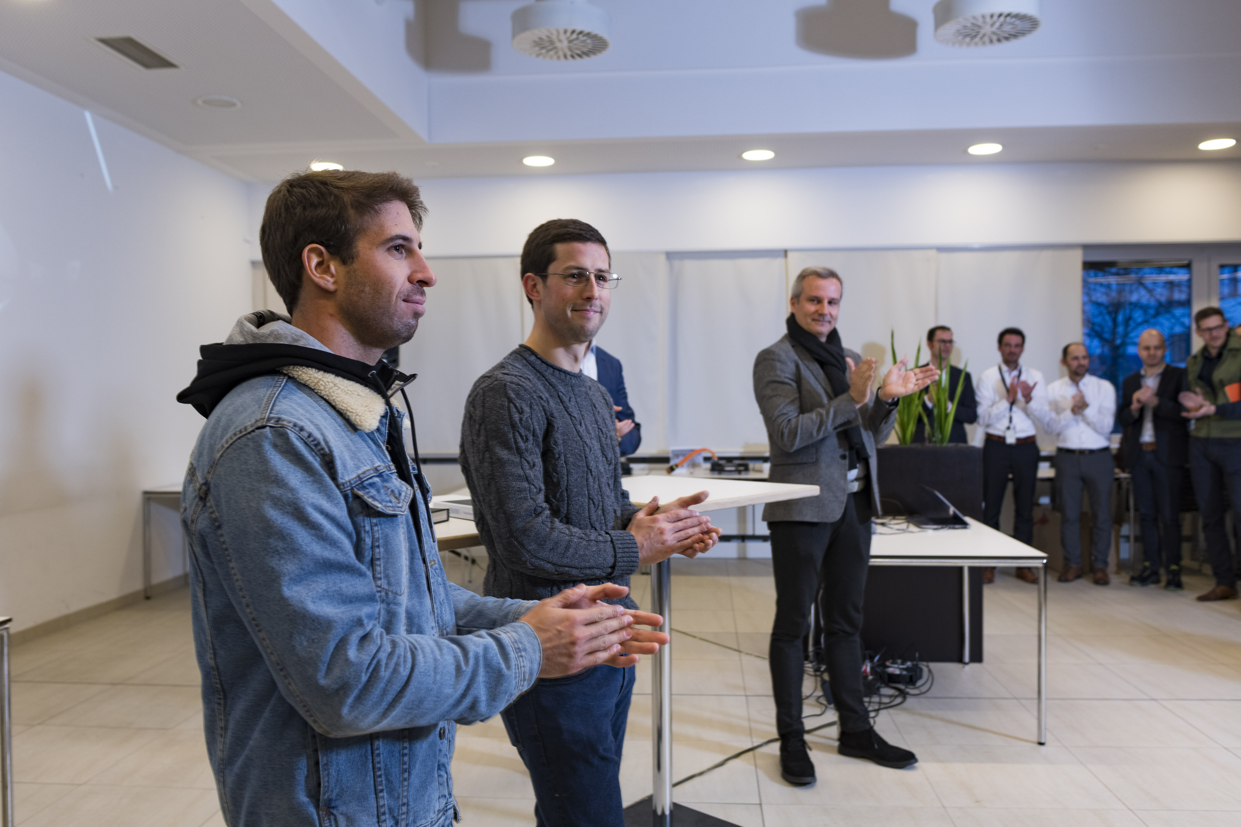 Munich (GER), 11th February 2019. BMW i Motorsport, BMW i Andretti Motorsport, Competence Centre Development Electric Powertrain, António Félix da Costa (BMW works driver), Alexander Sims (BMW works driver), Jens Marquardt (BMW Motorsport Director)