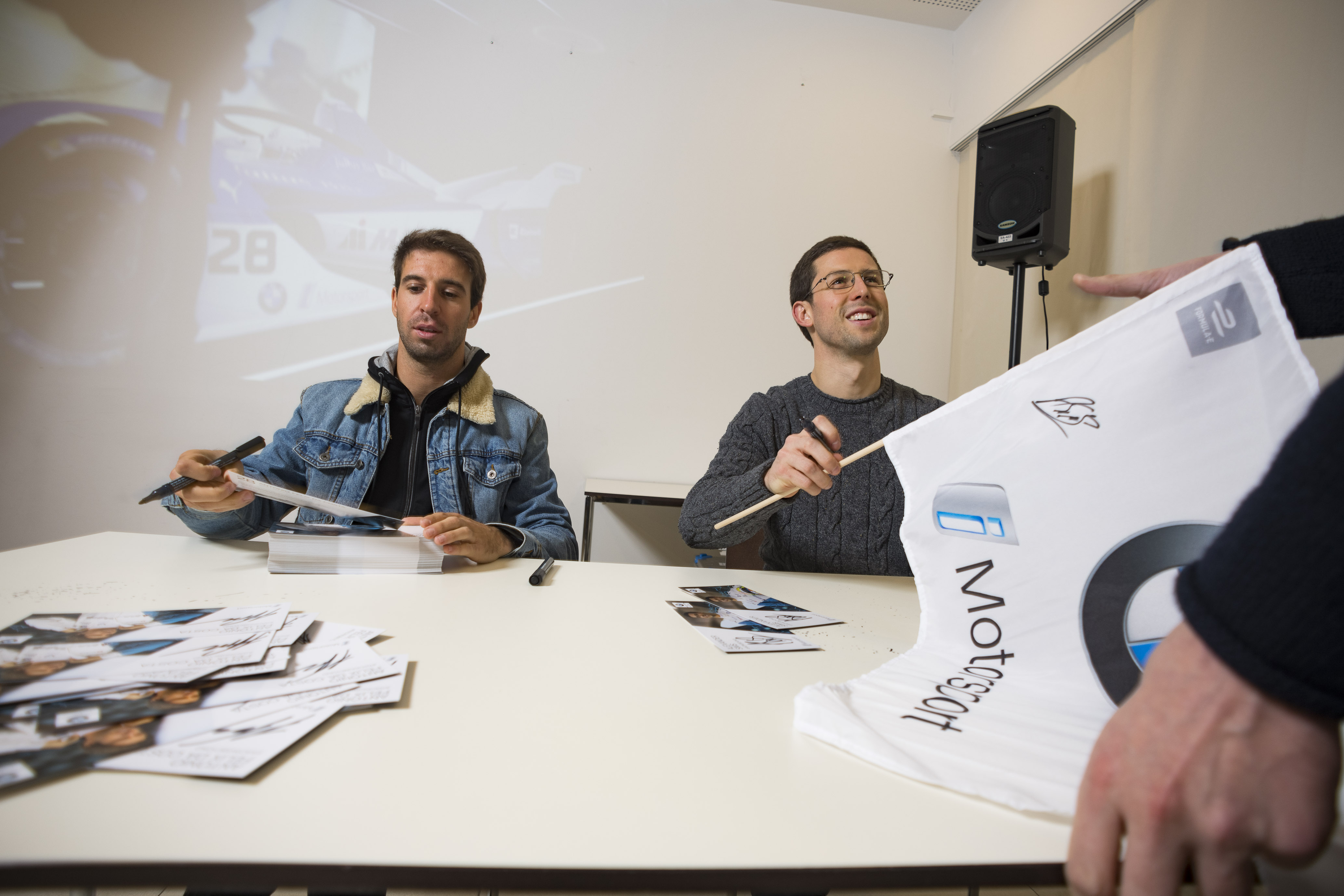 Munich (GER), 11th February 2019. BMW i Motorsport, BMW i Andretti Motorsport, Competence Centre Development Electric Powertrain, António Félix da Costa (BMW works driver), Alexander Sims (BMW works driver)