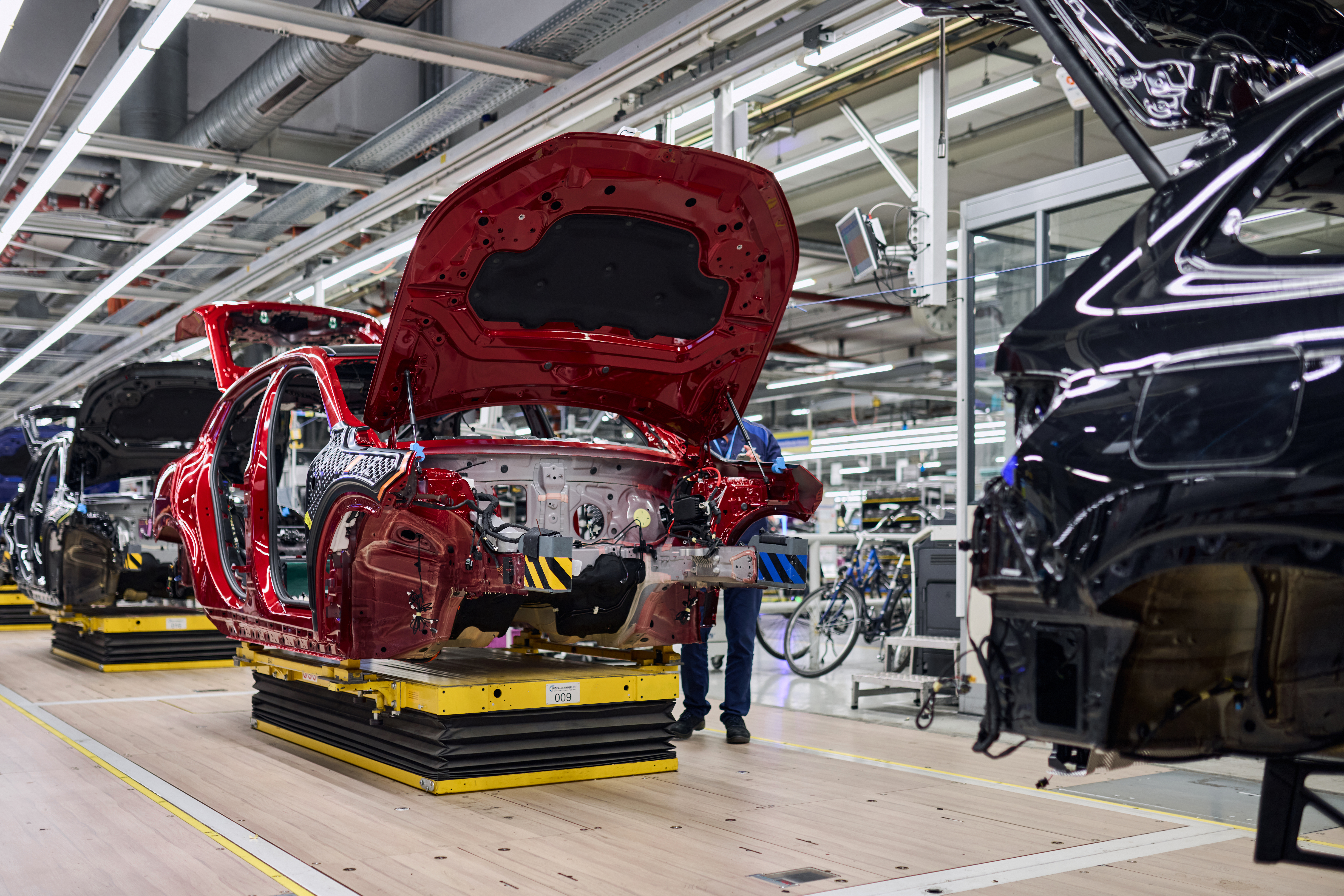 Bodyshop of a third-generation BMW 3 Series (E36) at the BMW Group plant Regensburg (1990)
