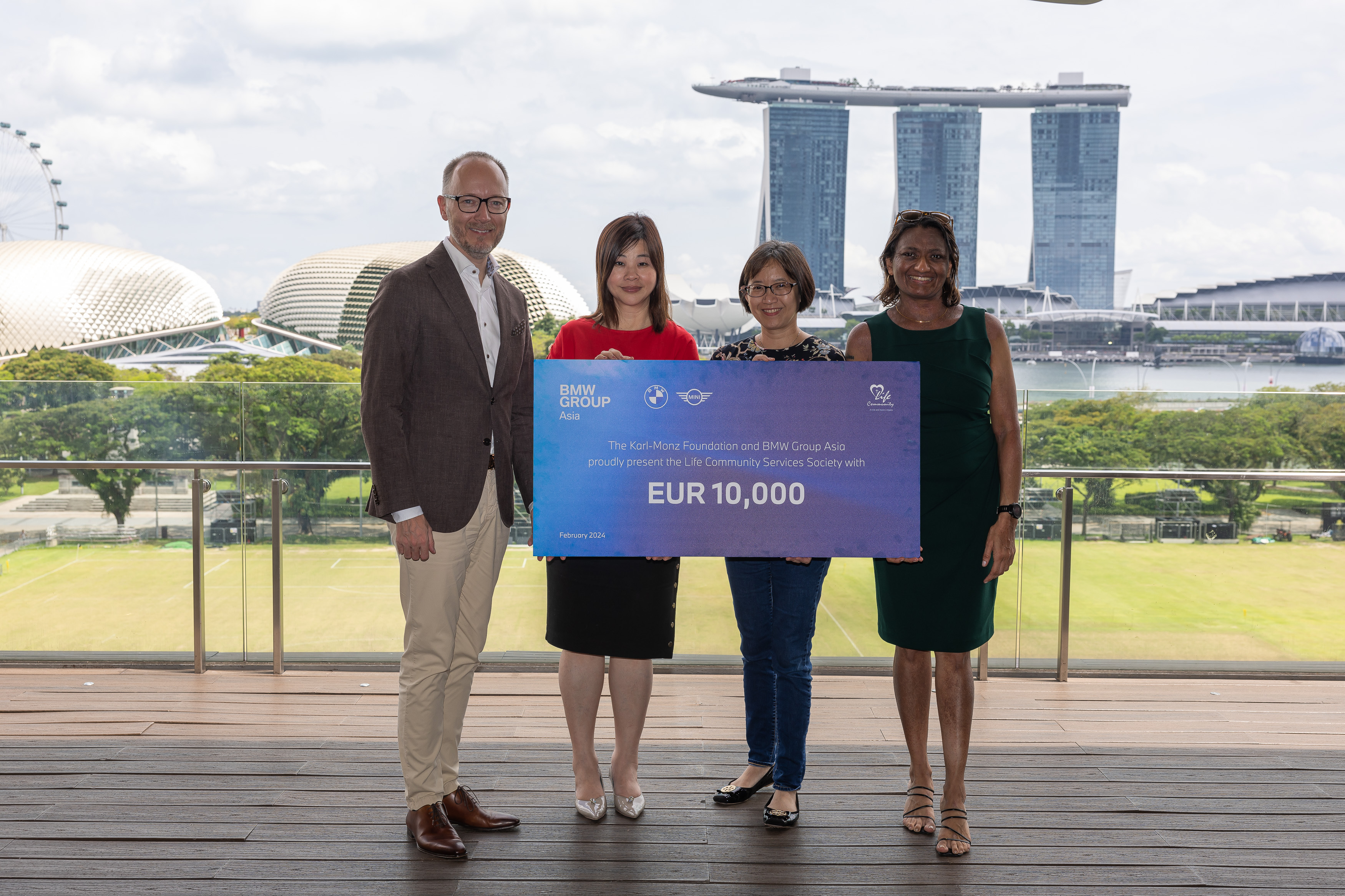 The Karl-Monz-Foundation and BMW Group Asia proudly present EUR 10,000 to Life Community Services Society in Singapore. (02/2024)
