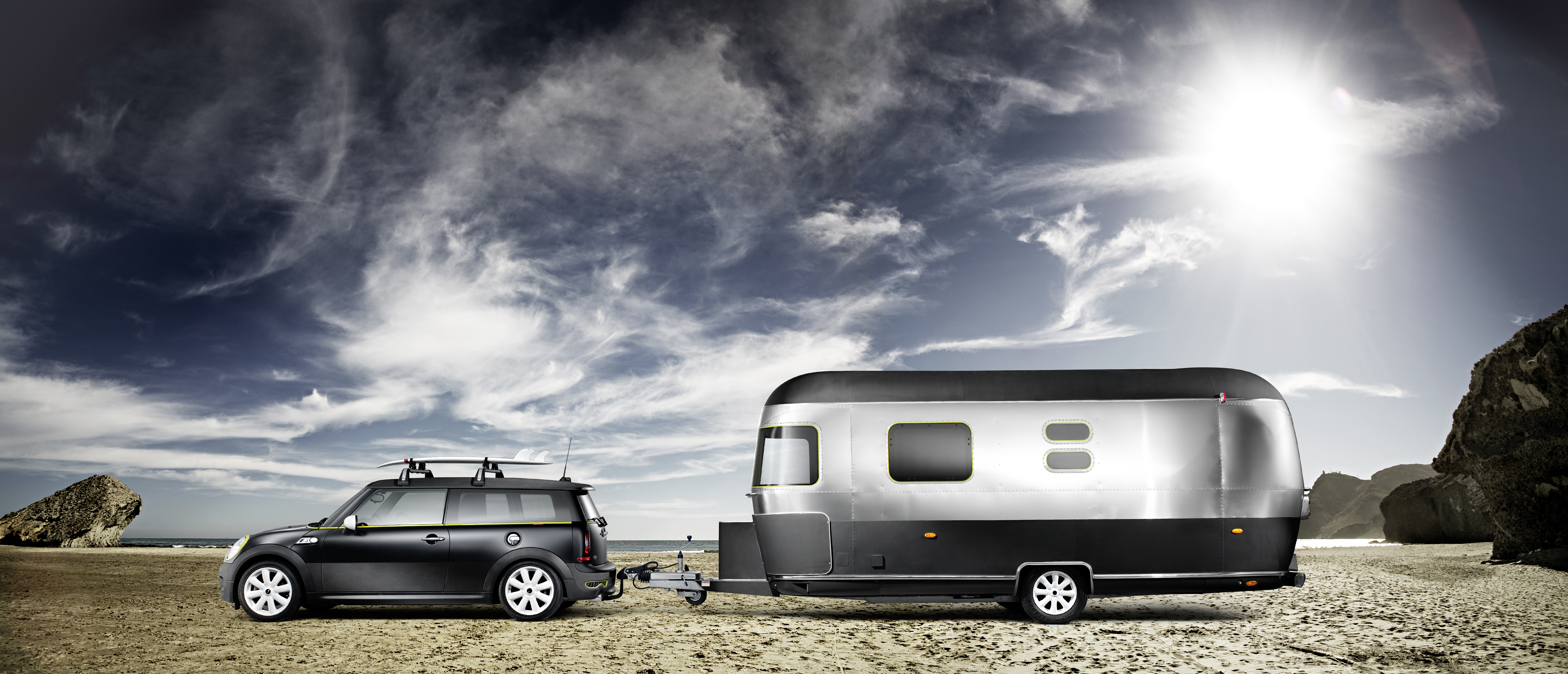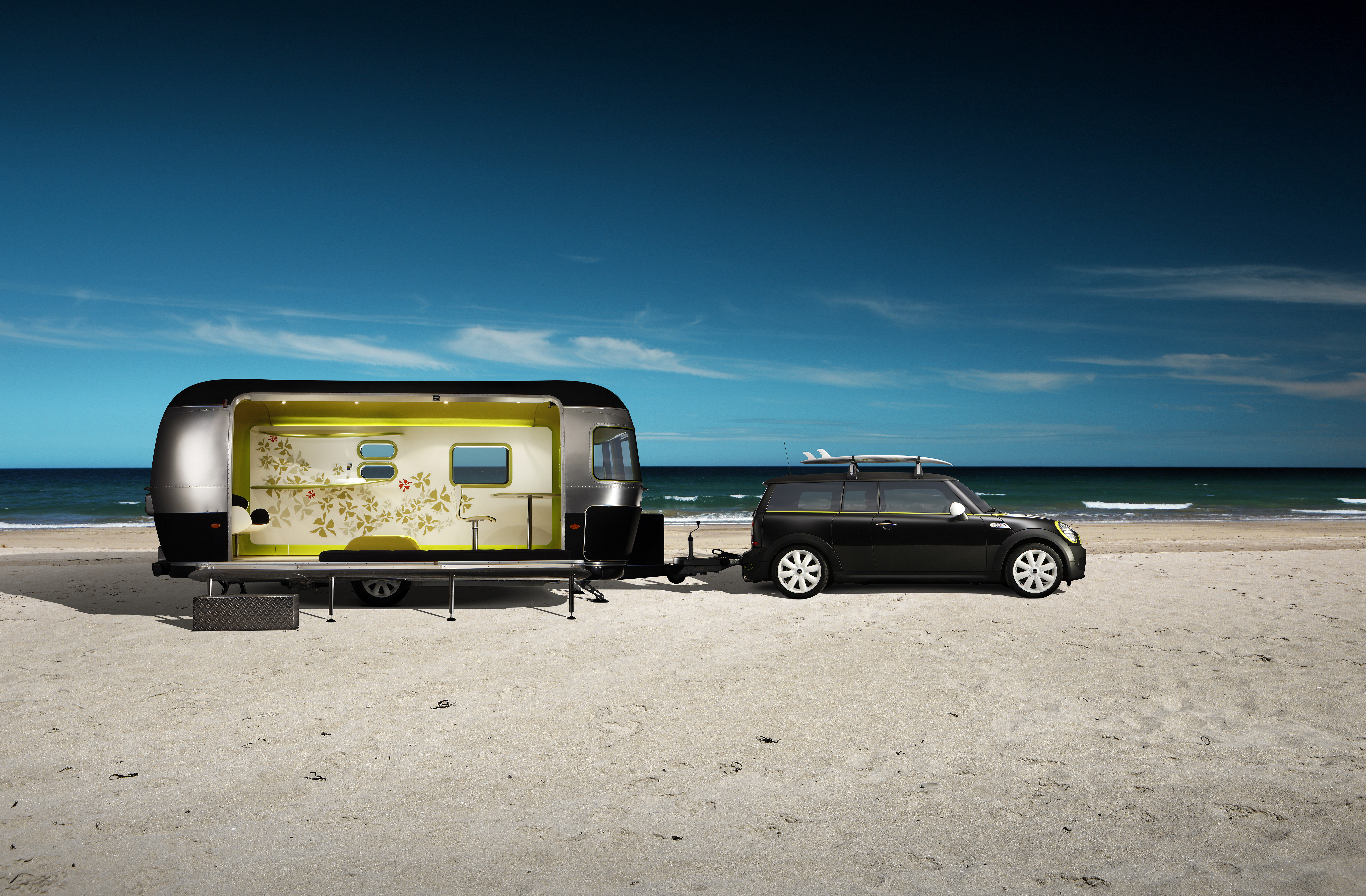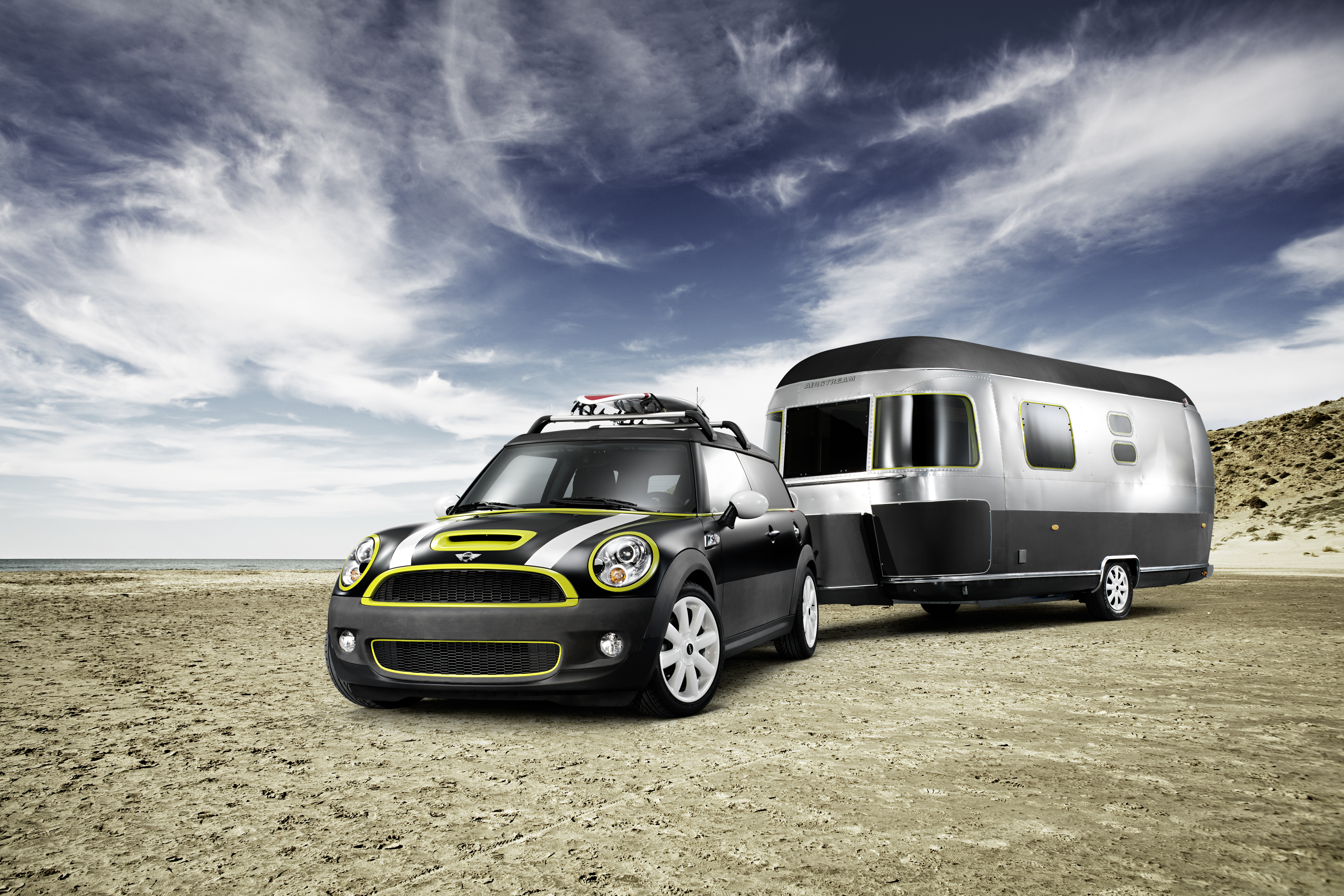 The new MINI Clubman with roof rack base support system for roof rails and surfboard holder. (06/2015)