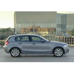BMW 120i - driving shots: drive-past shots fountain, steel/glass architecture, luxury shopping arcades, modern architecture, modern office building, exceptional architecture (wood, concrete, glass, steel), modern museum (concrete/glass facade, concrete pillars) / Exterior design: several shots (daylight), also with FIZ visible in the background (evening) / Interior design (equipment: Alaska Grey leather, "Kodiak Silver" aluminium trim, 6-speed manual transmission, iDrive with large on-board monitor): Start-Stop-button and operation, iDrive Controller, "Menu" switch and operation, rear seats (getting in, fastening seats belt, getting out), trunk, stop motion animation of seats, headlights, rear light / Engine / Driving shots: drive-past shots "Old Munich", modern building (Max-Planck Institute), crossing bridge across Isar river, fountain in front of church, from a preceding and parallel vehicle (partly through tunnels with lights on, partly with BMW tower and Olympic Park in the background), with terminals and other airport buildings in the background, pan across green field, road leading through forest, blossoming rape field, road leading through forest with view across meadow, blossoming rape field with spire in the background, alley, forest and meadows, road leading through hop field, curve on a hill, fields and meadows, curve outside a village, roadside chapel amidst meadows and fields, on-board camera (steering, shifting gears, rear view mirror, lateral and over-shoulder shots), from a vehicle following, through village, passing meadows and woods / BMW Tower and Research and Innovation Centre (FIZ) in Munich (aerial and outdoor shots).