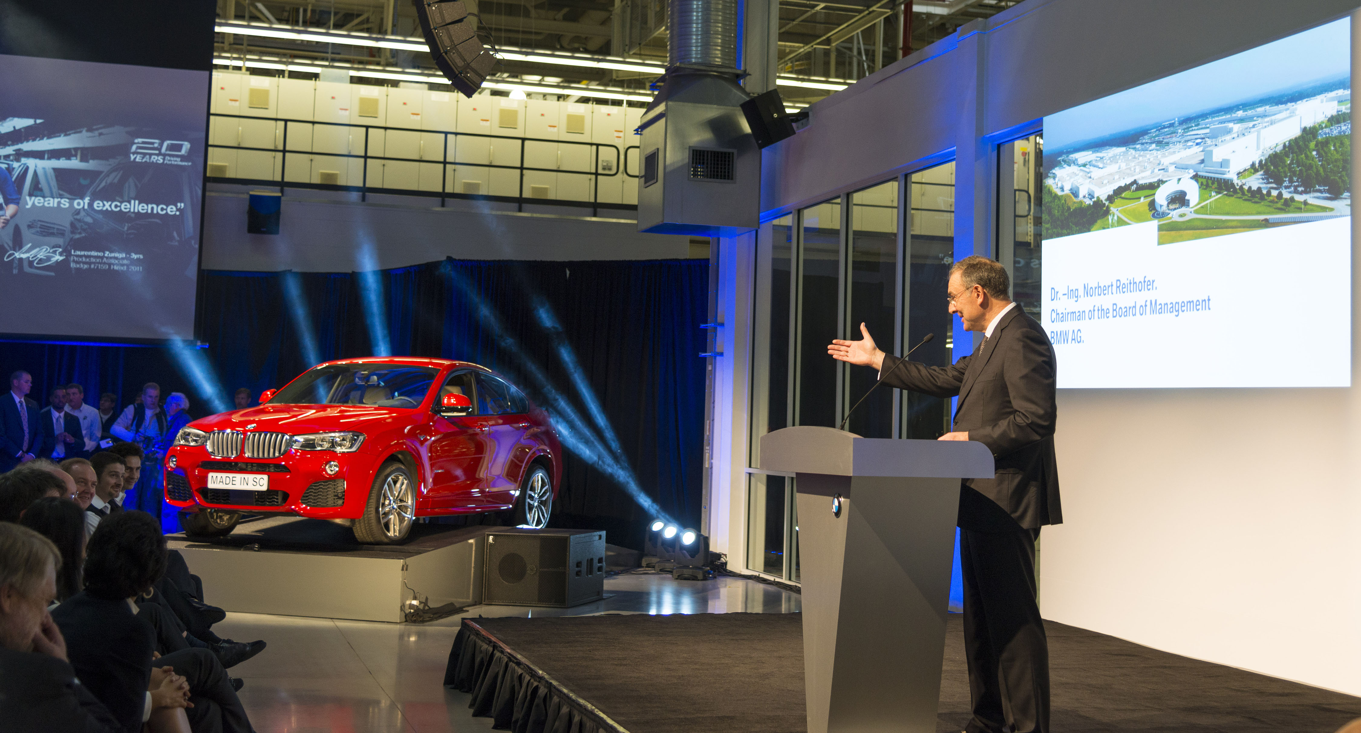 Dr. Norbert Reithofer, Chairman of the Board of Management, BMW Group, introduces the all-new BMW X4 at BMW's Commitment in the USA ceremony in Spartanburg, SC. (03.2014)