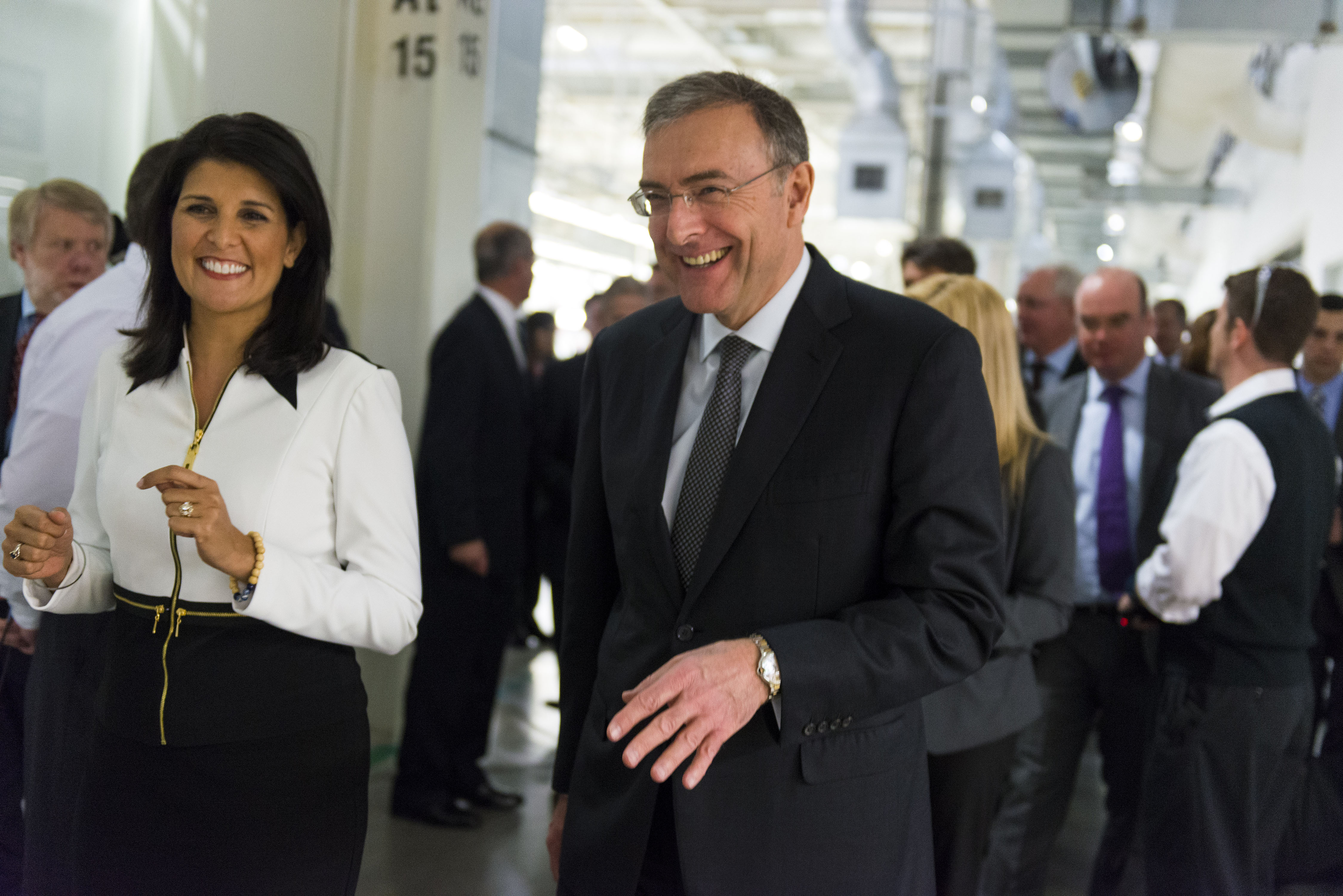 The Honorable Nikki Haley, Governor of South Carolina, and Dr. Norbert Reithofer, Chairman of the Board of Management, BMW Group celebrate BMW's announcement of an additional $1 Billion investment in the South Carolina plant. (03/2014)