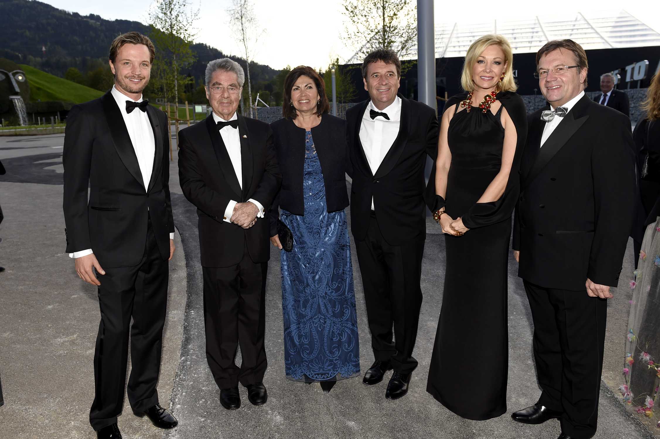 BMW ist offizieller Mobilitätspartner bei den Feierlichkeiten anlässlich des 120-jährigen Firmenjubiläums und der Neueröffnung der Swarovski Kristallwelten. Markus Langes-Swarovski (Mitglied der Swarovski Geschaeftsfuehrung) , Bundespraesident Dr. Heinz Fischer, Kurt Egloff (Geschaeftsführer BMW Group Austria) mit Frau Ariane, Nadja Swarovski, Landeshauptmann Guenther Platter (04/2015)