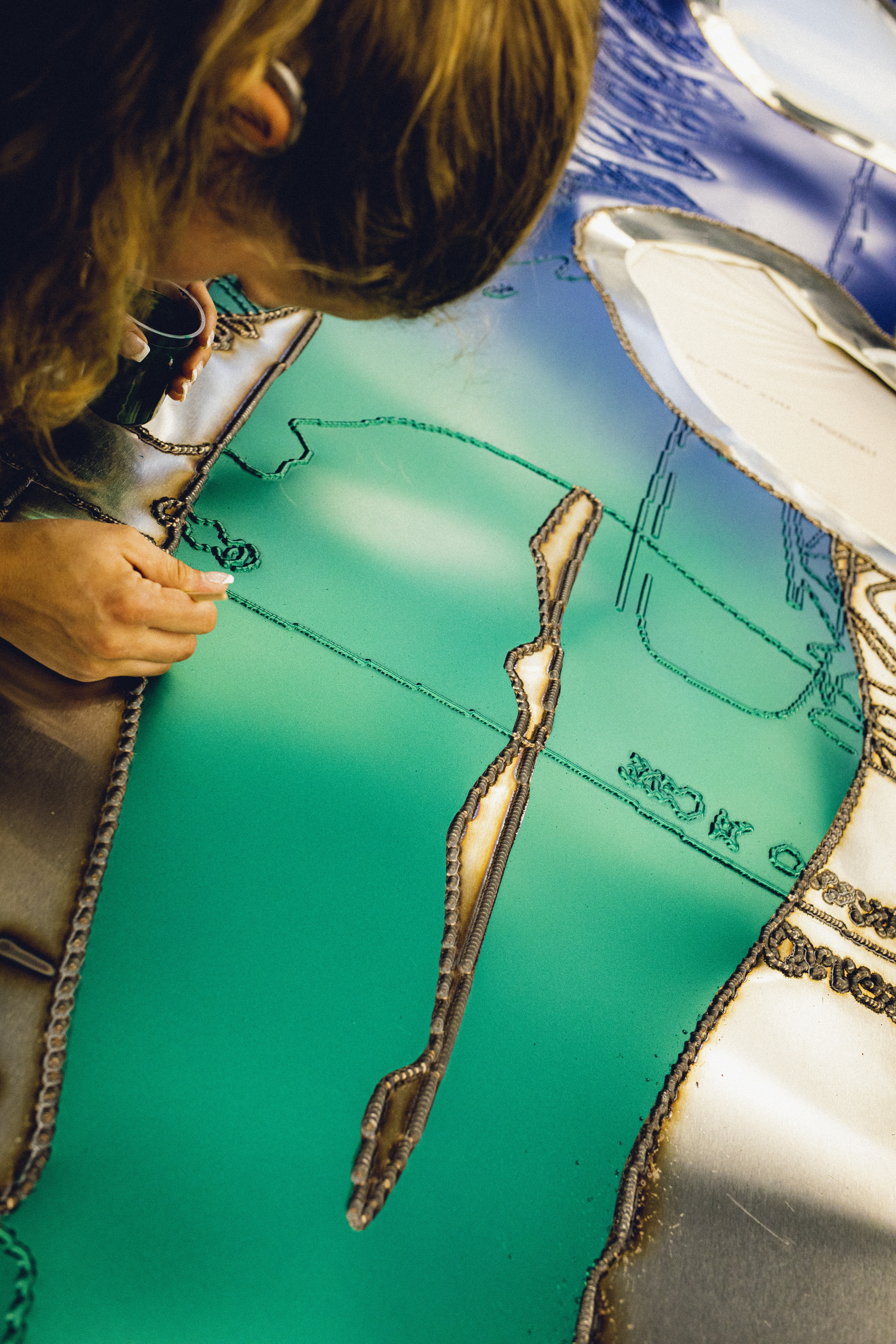 BMW Art Journey: Julien Creuzet, Fertigstellung seines Kunstwerks „blue green sea bruise on the horizon“ im BMW Group Werk in Dingolfing (Deutschland), 2022. Foto: Daniel Nguyen. (08/2022)