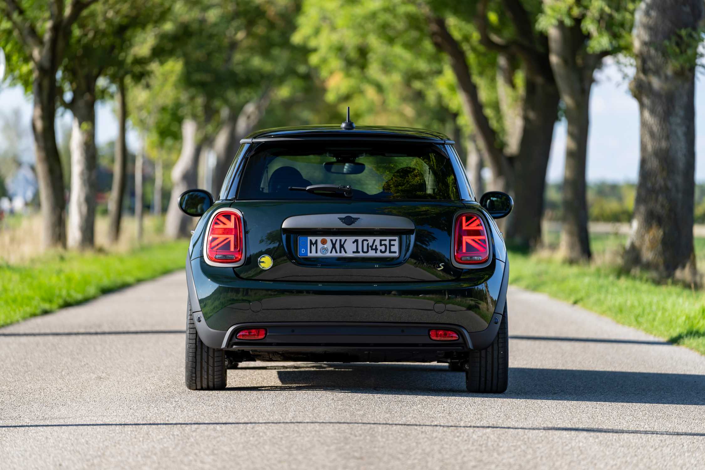 MINI Cooper SE Resolute Edition Rebel Green mit Dach und Spiegelkappen in Schwarz. (10/2022)