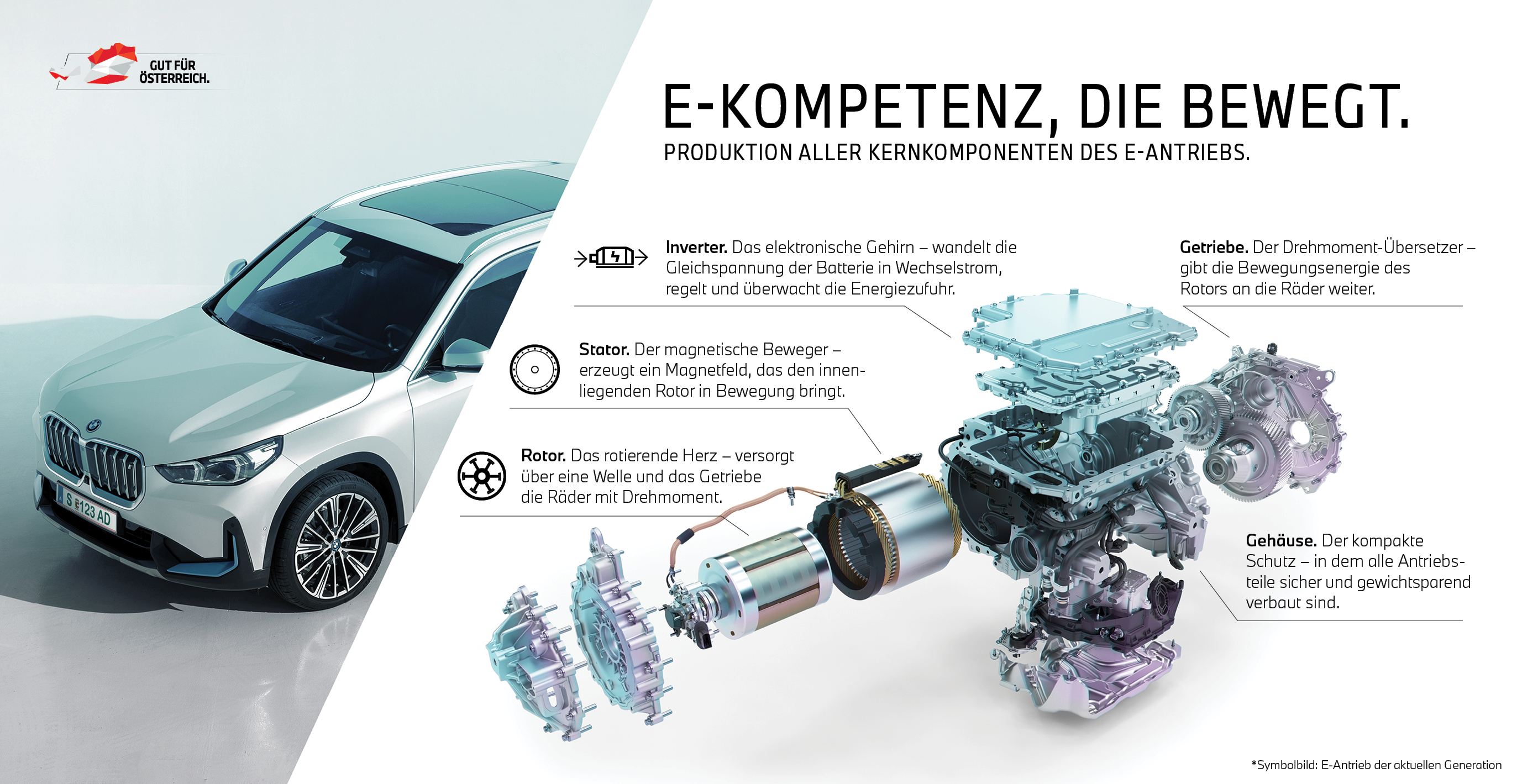 Infografik: Aufbau eines E-Antriebs und Funktionsweise der Komponenten (01/2023)