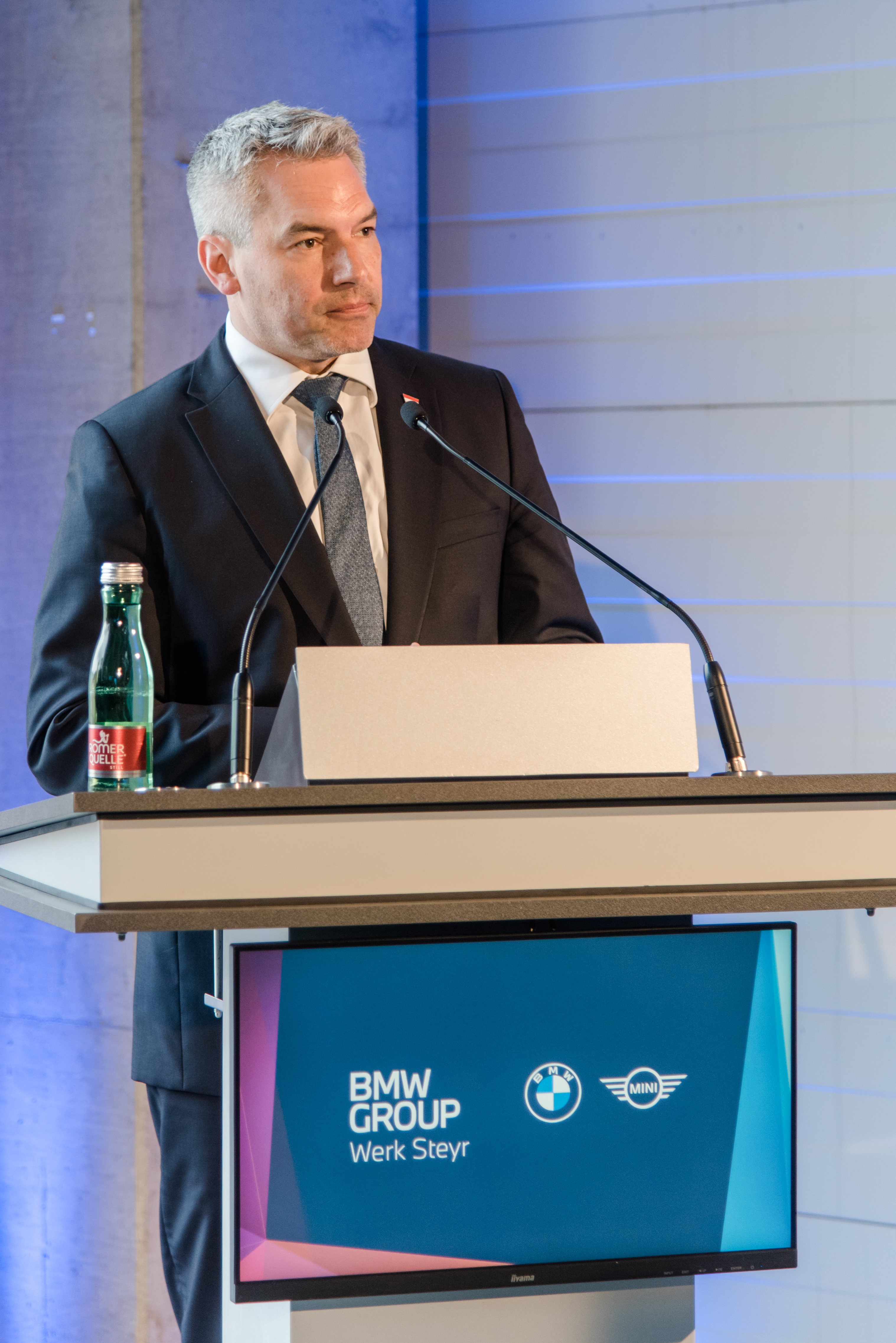 Pressestatement vom österreichischen Bundeskanzler Karl Nehammer im Anschluss zu seinem Besuch im BMW Group Werk Steyr am 18.04.2023 (04/2023)