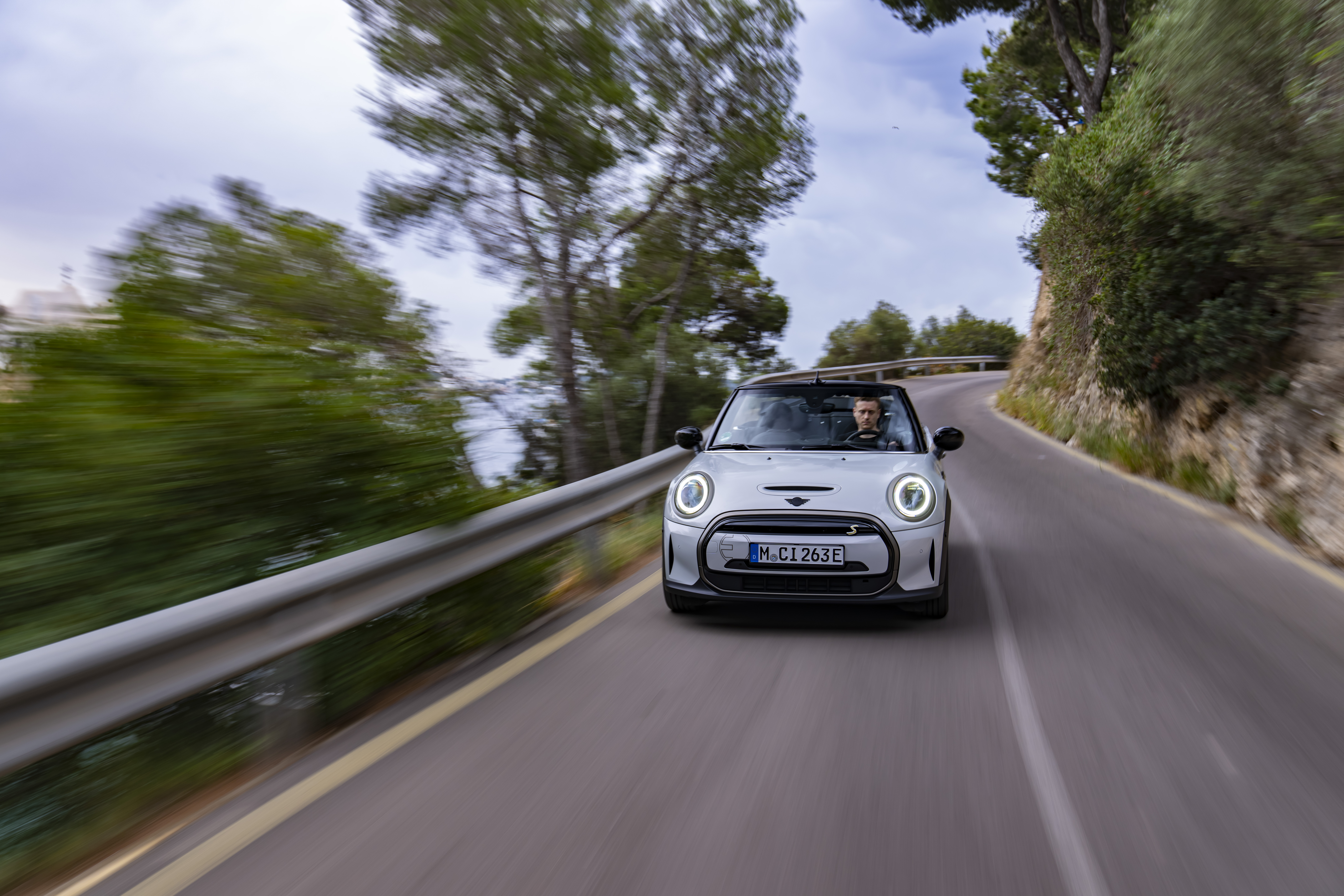 MINI Cooper SE Cabrio (Stromverbrauch kombiniert in kWh/100 Km: 17,2 (WLTP); CO2-Emissionen kombiniert: 0 g/km).