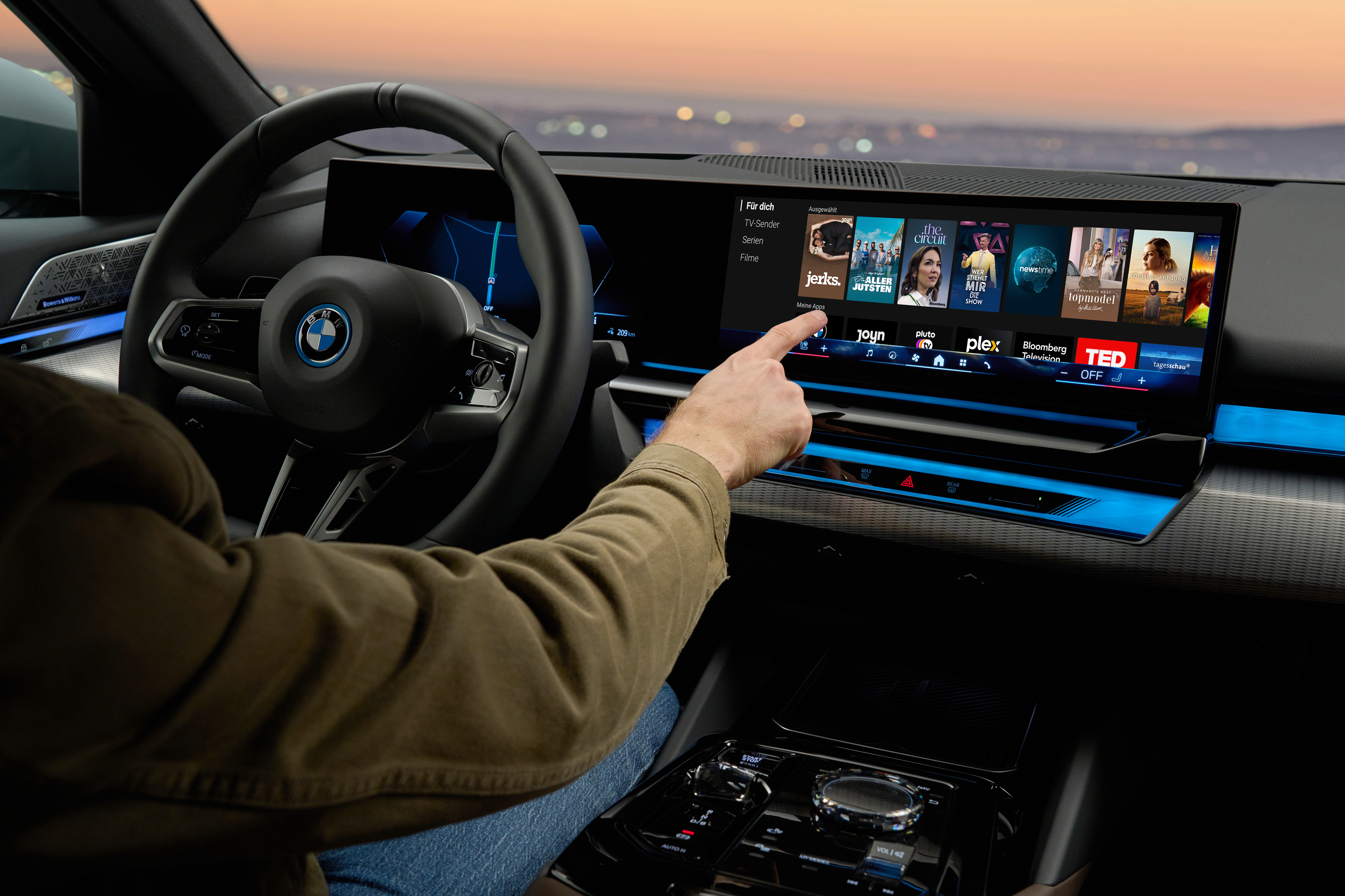 Startbildschirm der Video-Streaming-Plattform im neuen BMW 5er. Das Bild zeigt landesspezifische Inhalte für Deutschland. (2023)