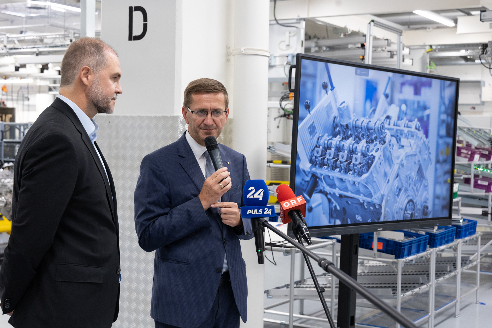 Werksleiter Klaus von Moltke (li.) und Wirtschaftslandesrat von Oberösterreich Markus Achleitner (re.), (c) Josef Moser (09/2023)