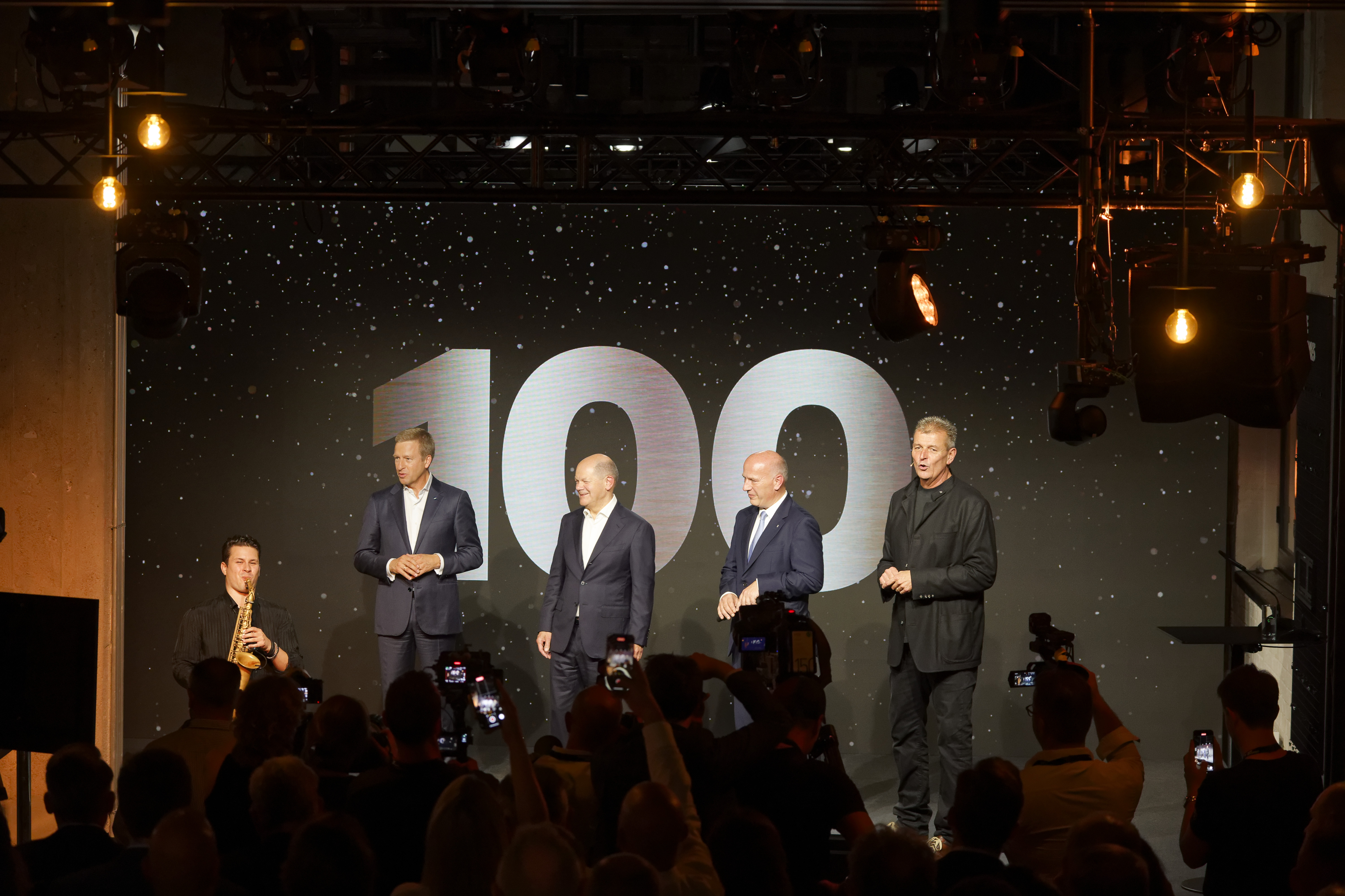 Eröffnung der BMW Motorrad Welt in Berlin. Oliver Zipse, Vorsitzender des Vorstands der BMW AG, Olaf Scholz, Bundeskanzler der Bundesrepublik Deutschland, Kai Wegner, Regierender Bürgermeister von Berlin und Markus Schramm, Leiter BMW Motorrad. (09/2023)