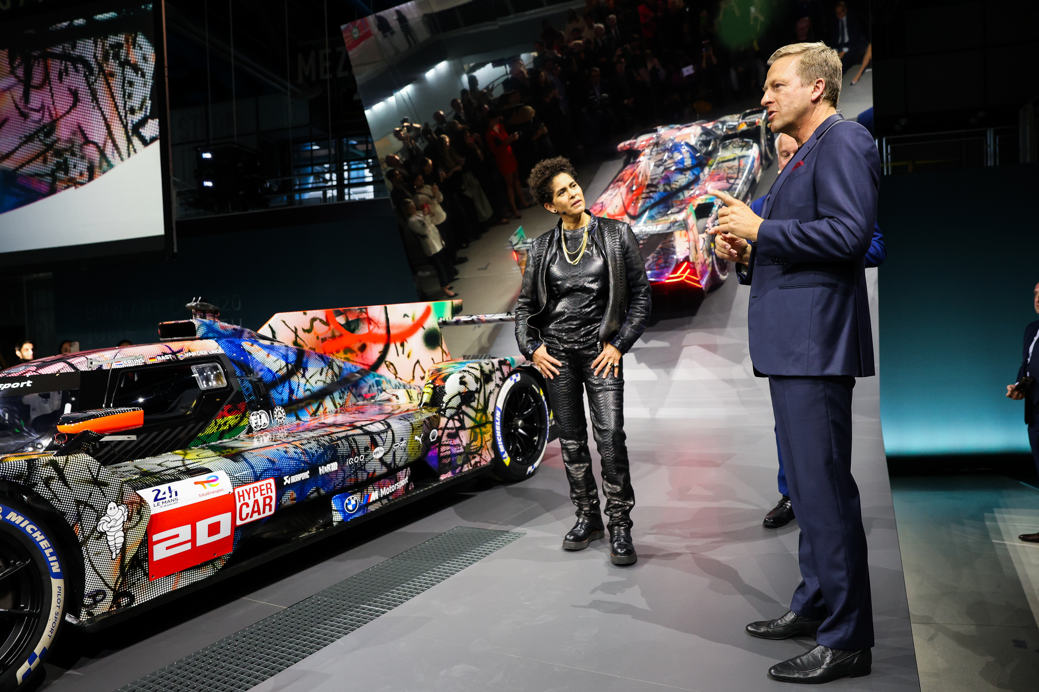 Weltpremiere des BMW Art Car #20 von Julie Mehretu, Centre Pompidou, Paris, 21. Mai 2024. Julie Mehretu und Oliver Zipse (Vorsitzender des Vorstands der BMW AG). (05/2024)