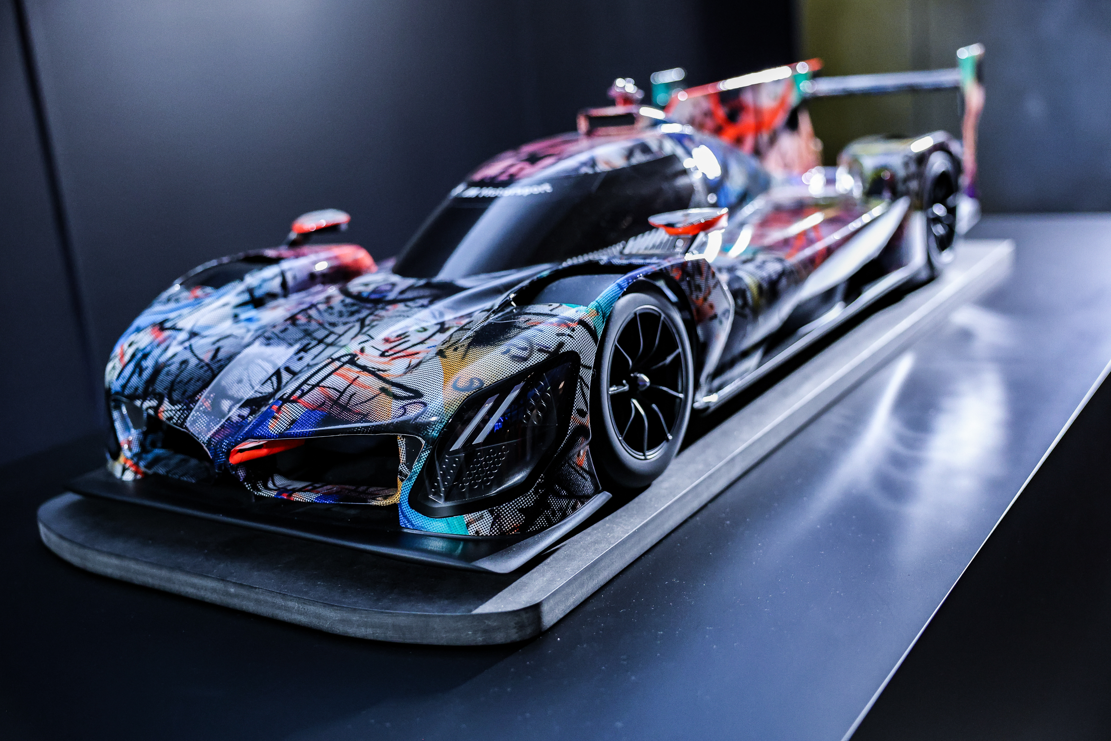 Modell des BMW Art Car #20 von Julie Mehretu bei der Weltpremiere, Centre Pompidou, Paris, 21. Mai 2024. (05/2024)