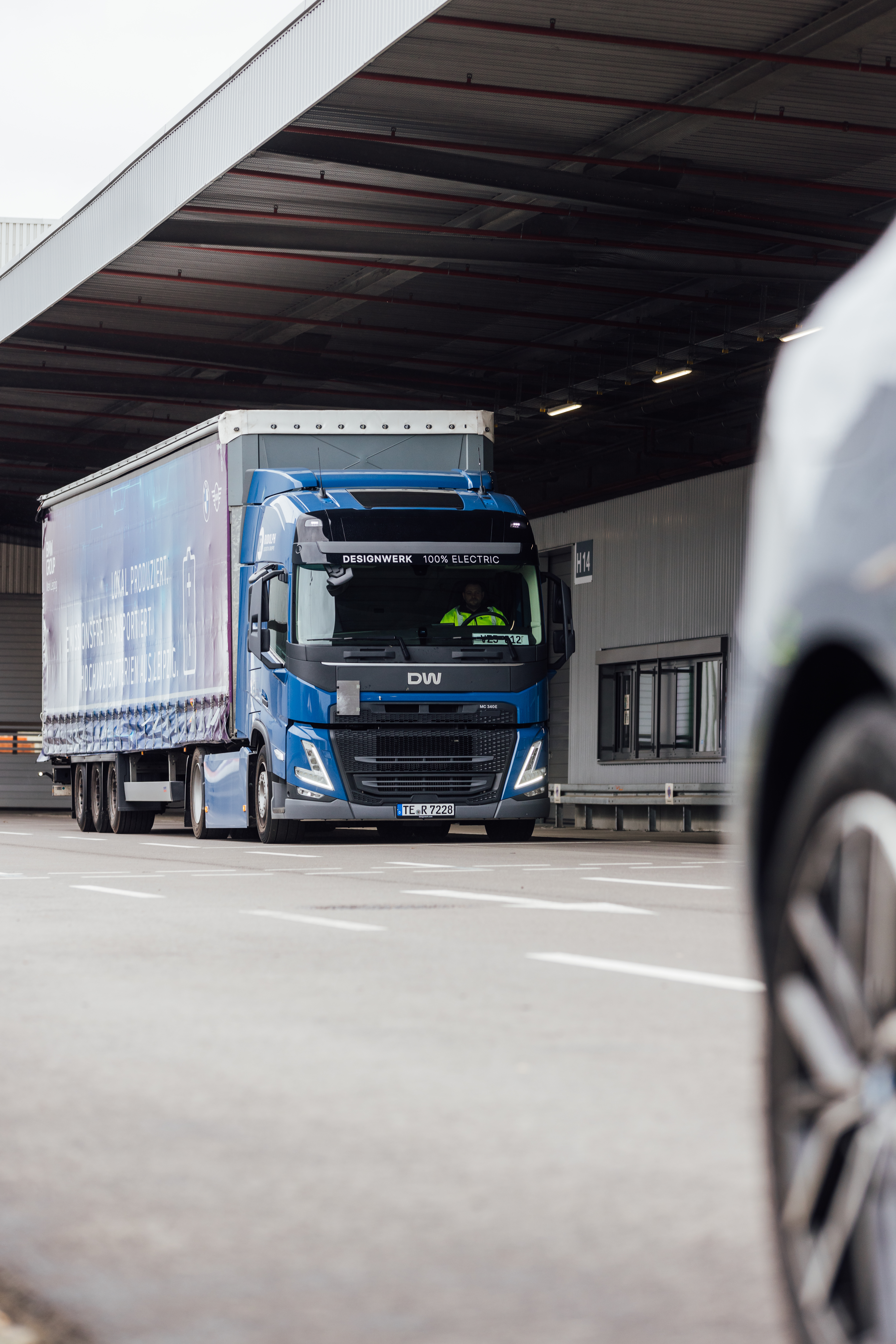 Zwei vollelektrisch angetriebene LKW sind für das BMW Group Werk Leipzig im Einsatz, um Komponenten für die Hochvoltbatteriefertigung zu transportieren (10/2024)