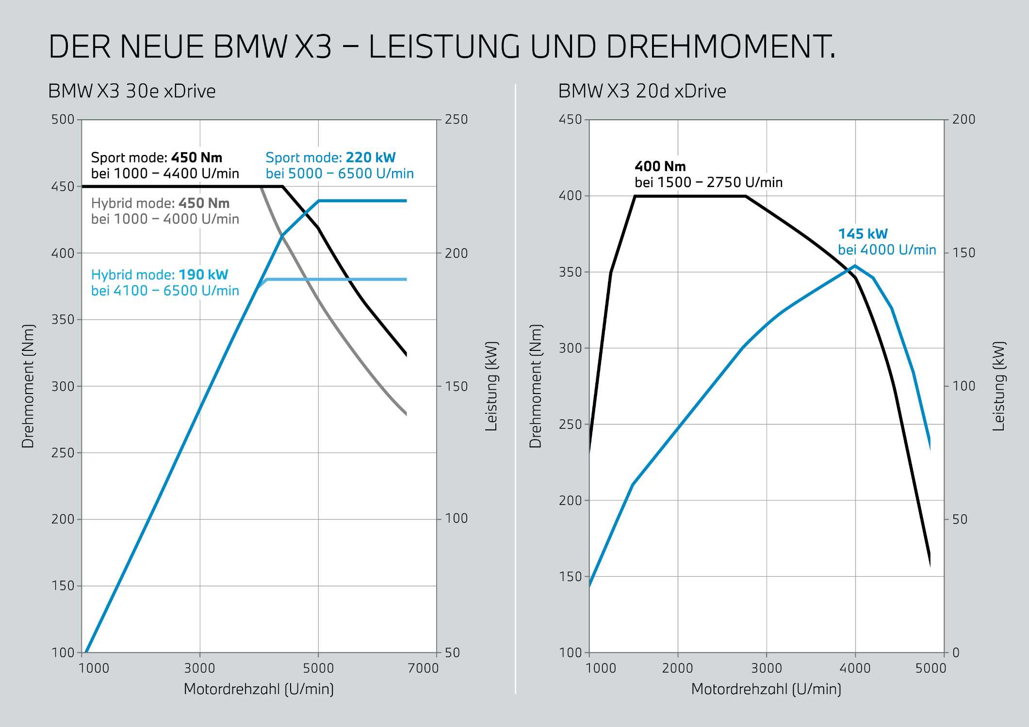 The new BMW X3 - Power and Torque. The new BMW X30e xDrive and the new BMW X3 20d xDrive. (06/2024)