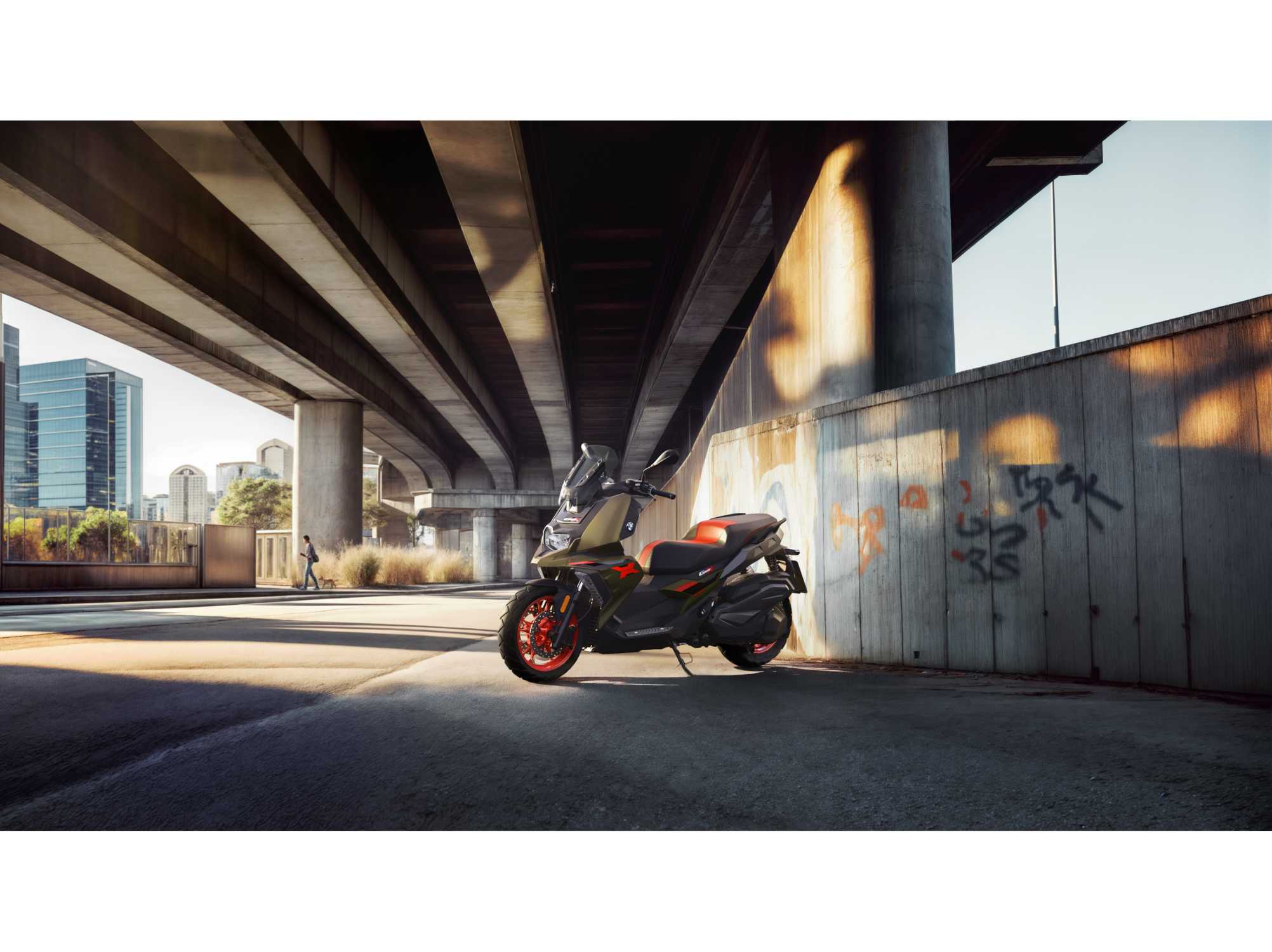 Nessa versão, a BMW C 400 X apresenta a cor da carroceria Kalamata metálica fosca e tem uma aparência empolgante e exclusiva ao mesmo tempo. Aros, faixas e detalhes vermelhos são inéditos. Um para-brisa fumê e o banco vermelho-preto completam o visual com personalidade e estilo.