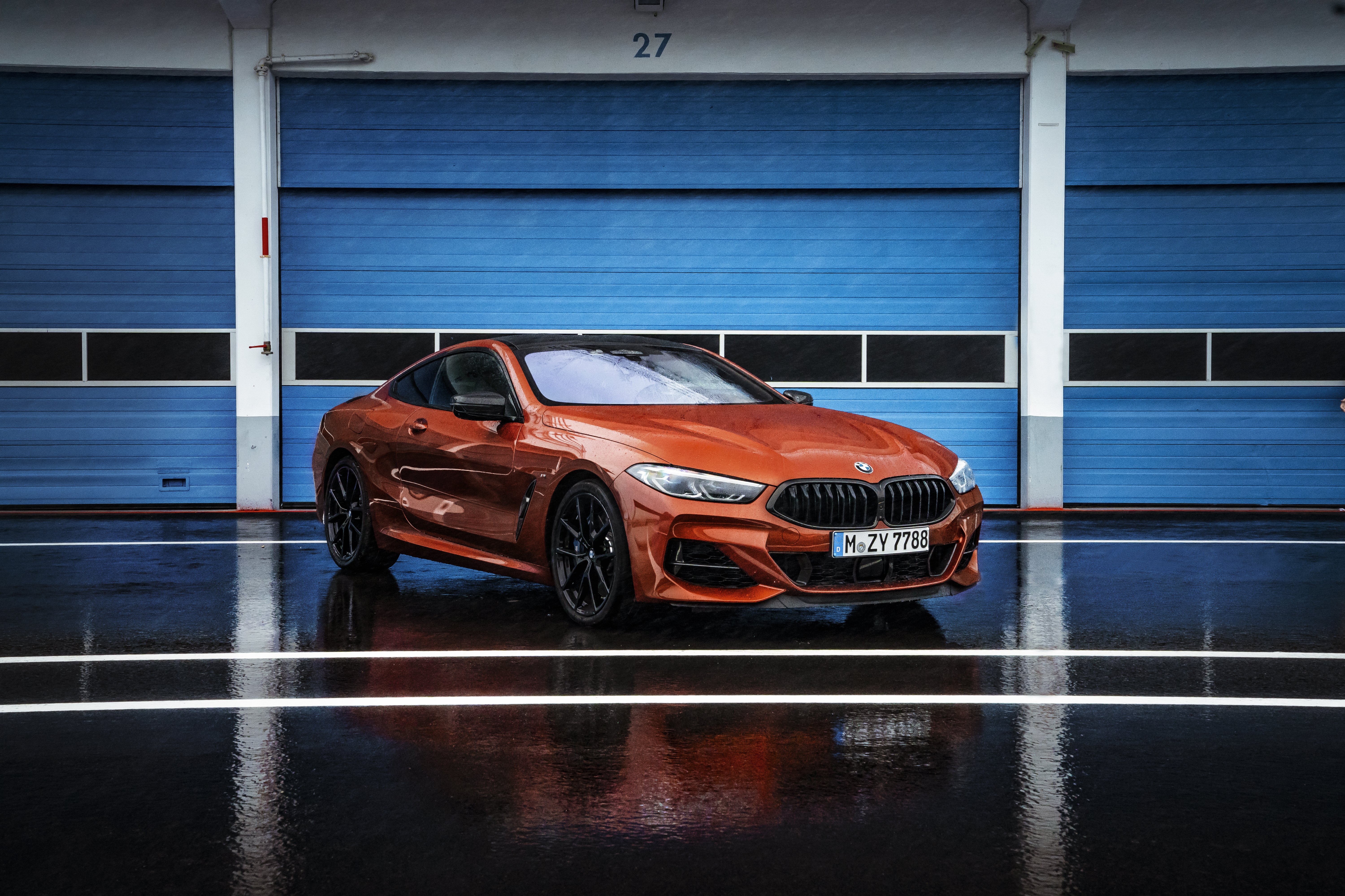 The new BMW M850i xDrive Coupe in colour Sunset Orange and 20" M light alloy wheels Y-spoke style 728 M Jet Black - Sintra / Lissabon, Scenic Drive (10/2018)