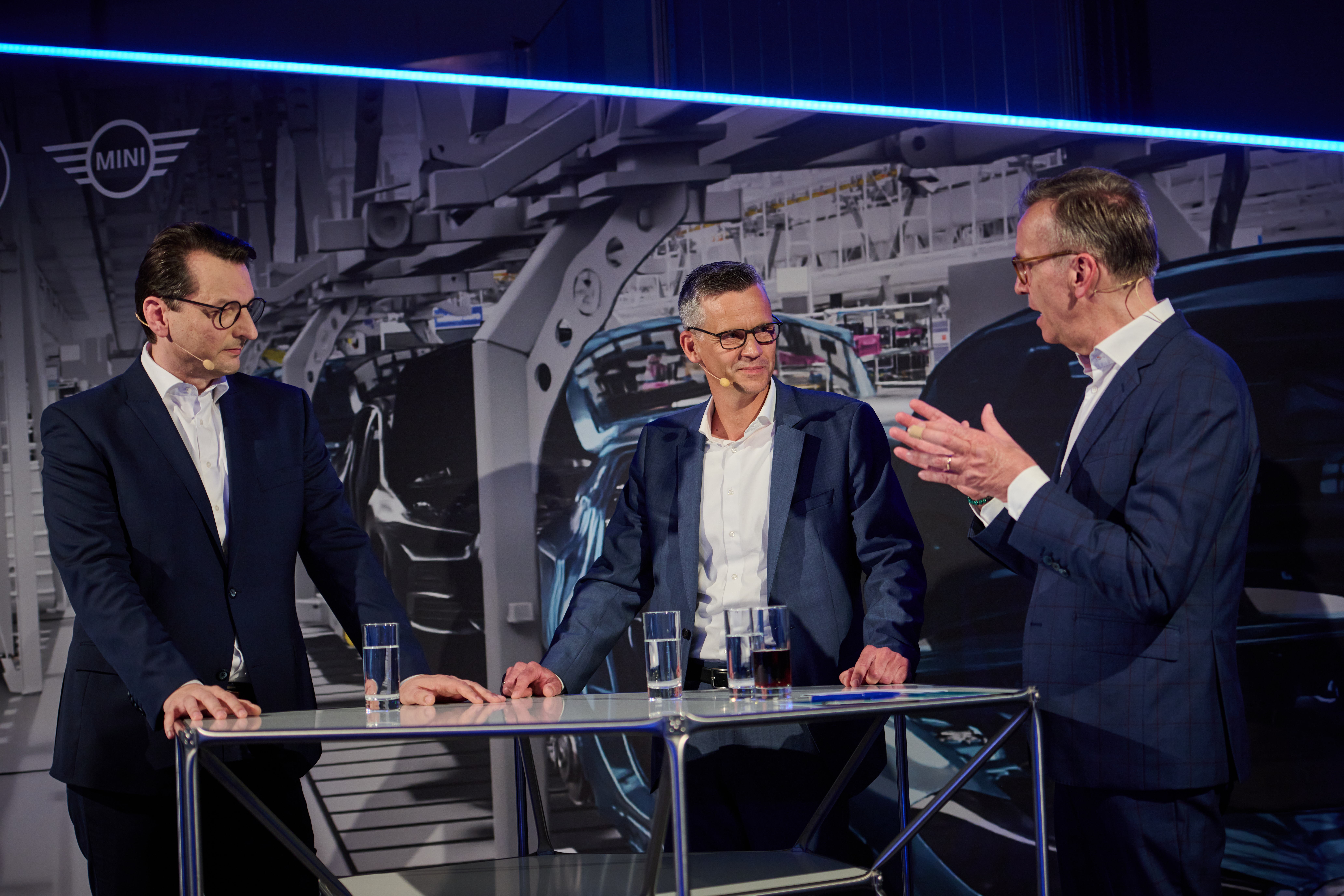 100 years anniversary BMW Plant Munich; Board member for Production Milan Nedeljković and Plant Manager Peter Weber talking to Maximilian Schöberl (05/2022)