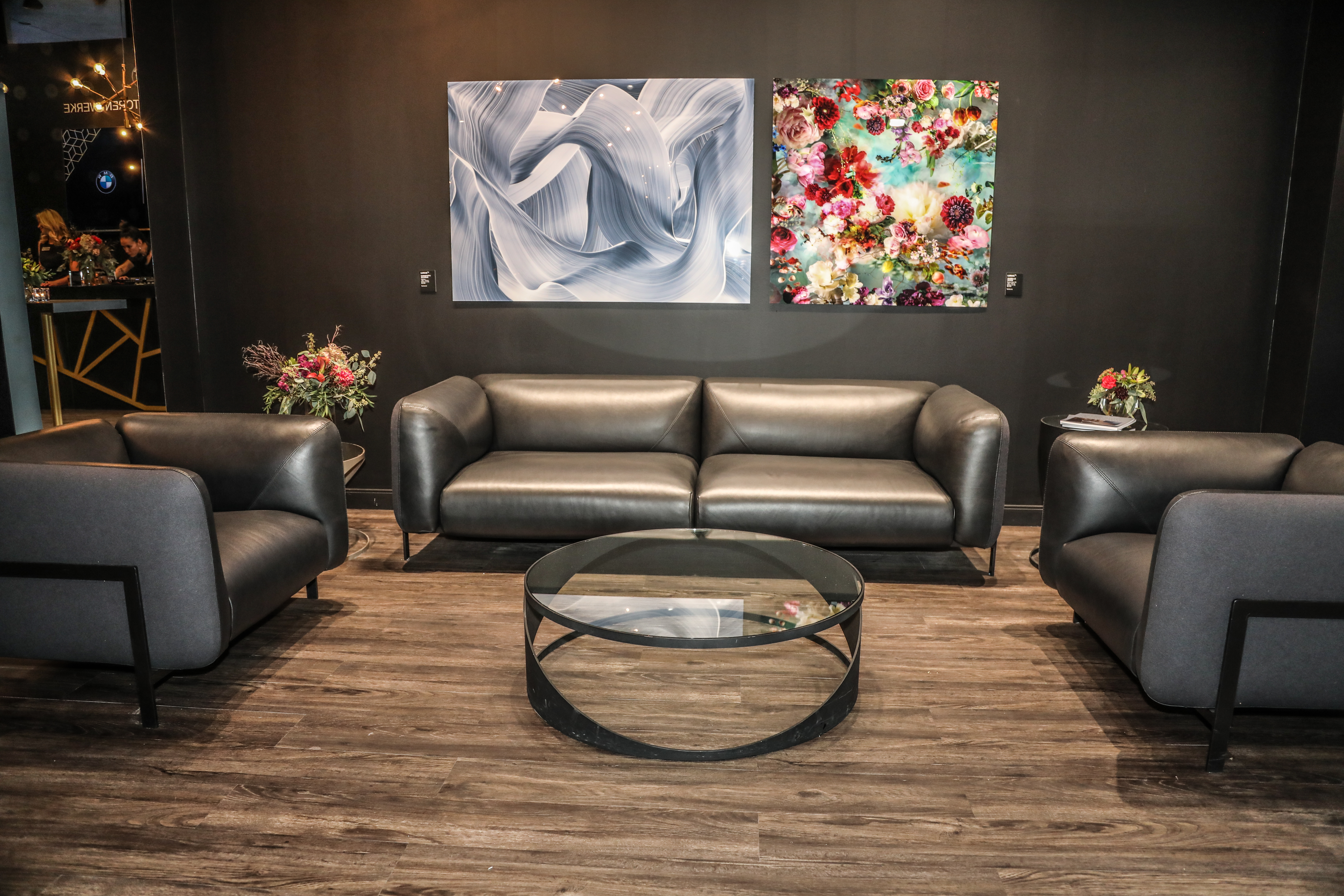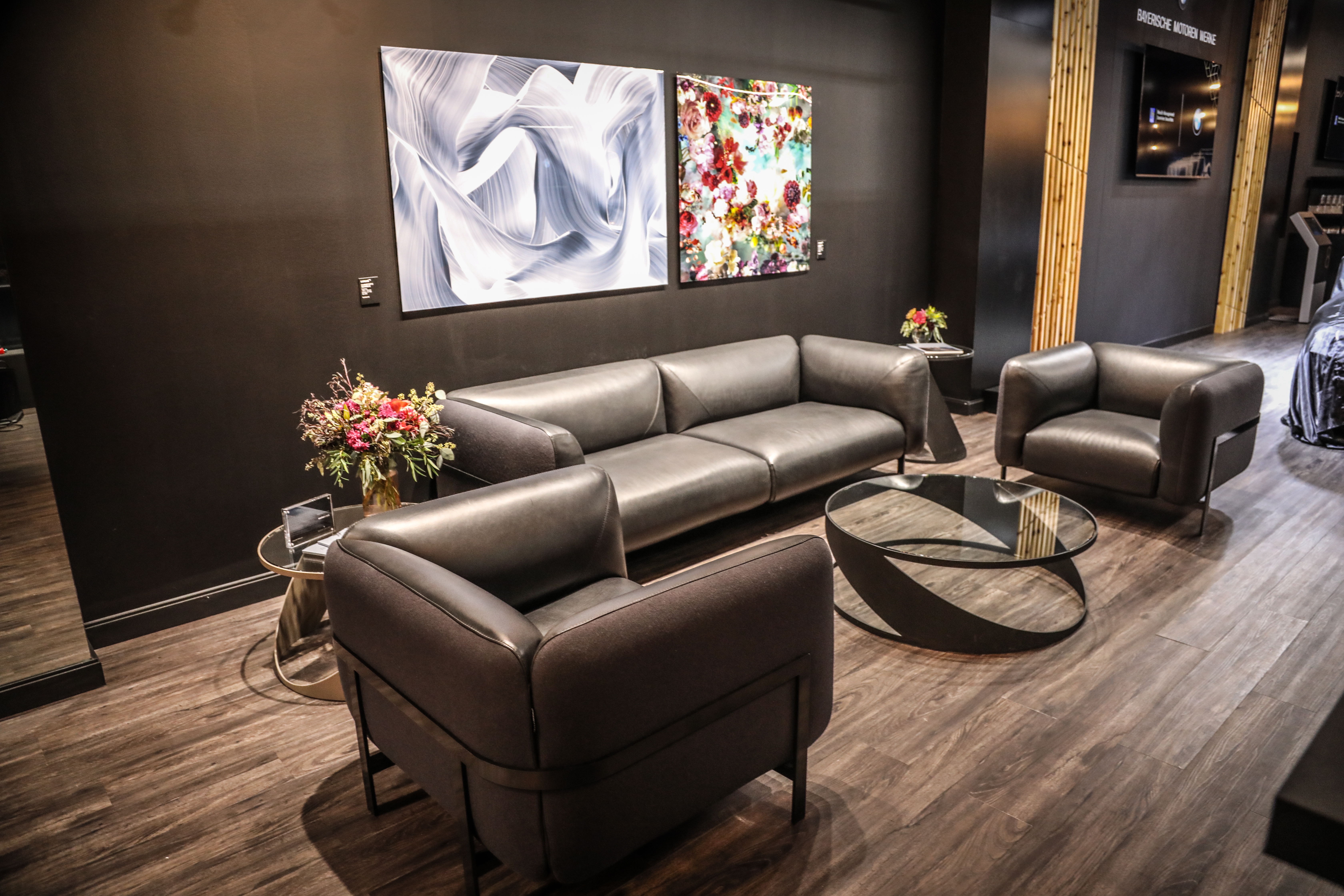 BMW Canada, together with like-minded brands, brings luxury to life at the BMW Luxury Lounge in Toronto. Two pieces of art from LUMAS Canada (floral piece by artist Isabelle Menin, abstract by artist Christoph Schrein) and furniture from Roche Bobois are featured here. (10/2018)
