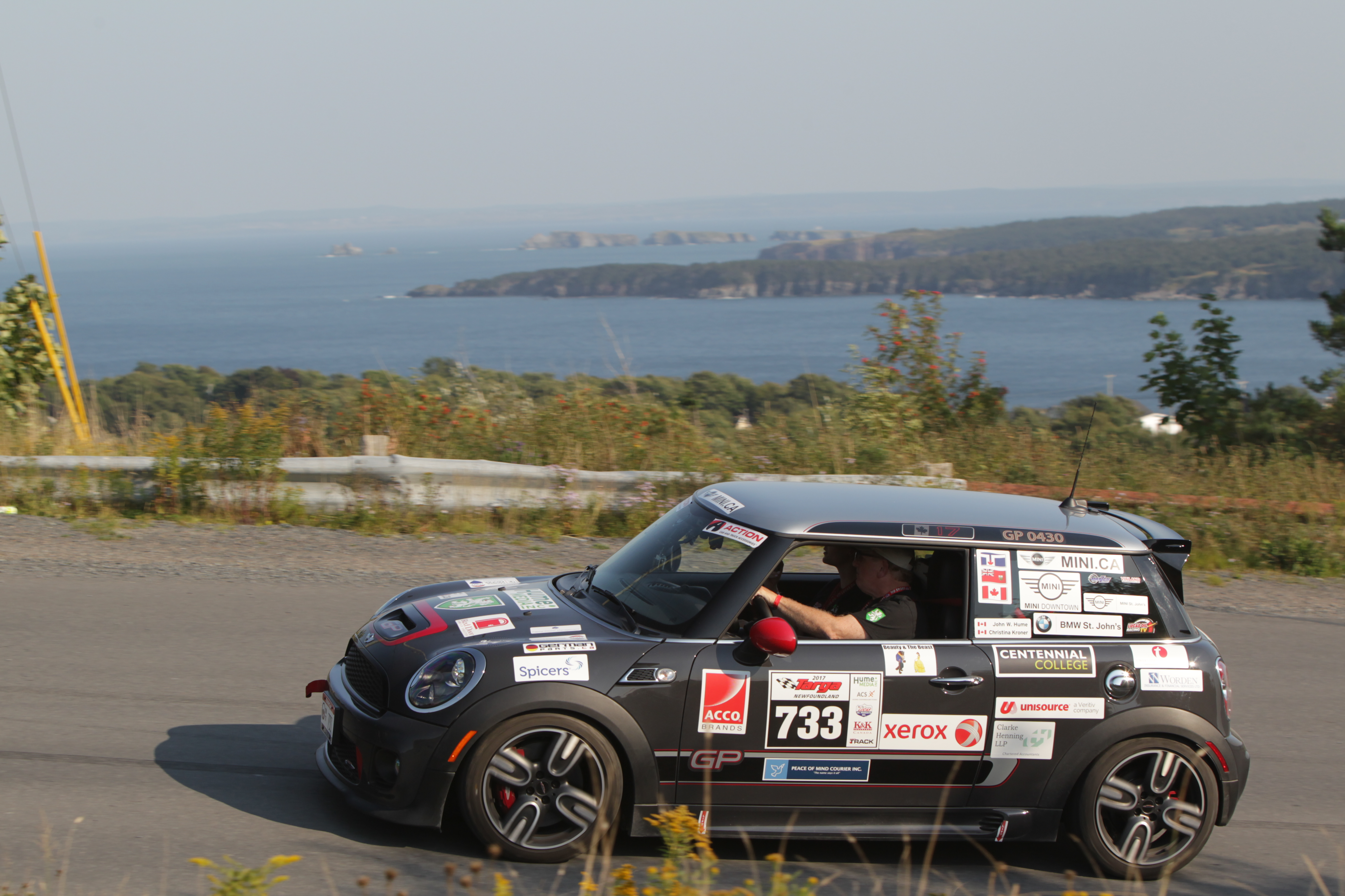 John Hume Sr. and Christina Kroner round a corner in their 2013 MINI G.P. during the 2017 Targa Newfoundland. September, 2017. (05/2018)