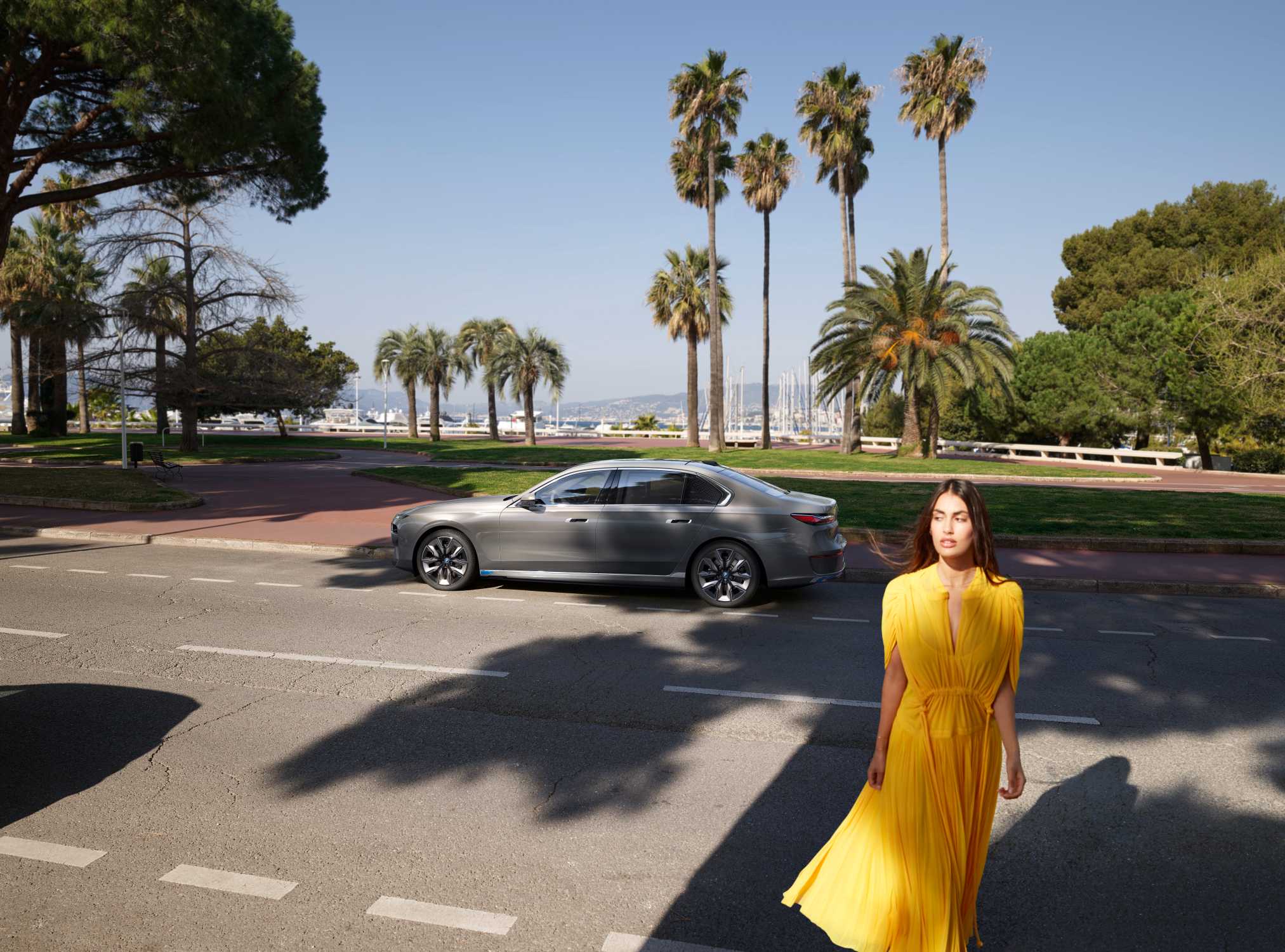 The new all-electric BMW i7 at the Cannes International Film Festival (05/2022).