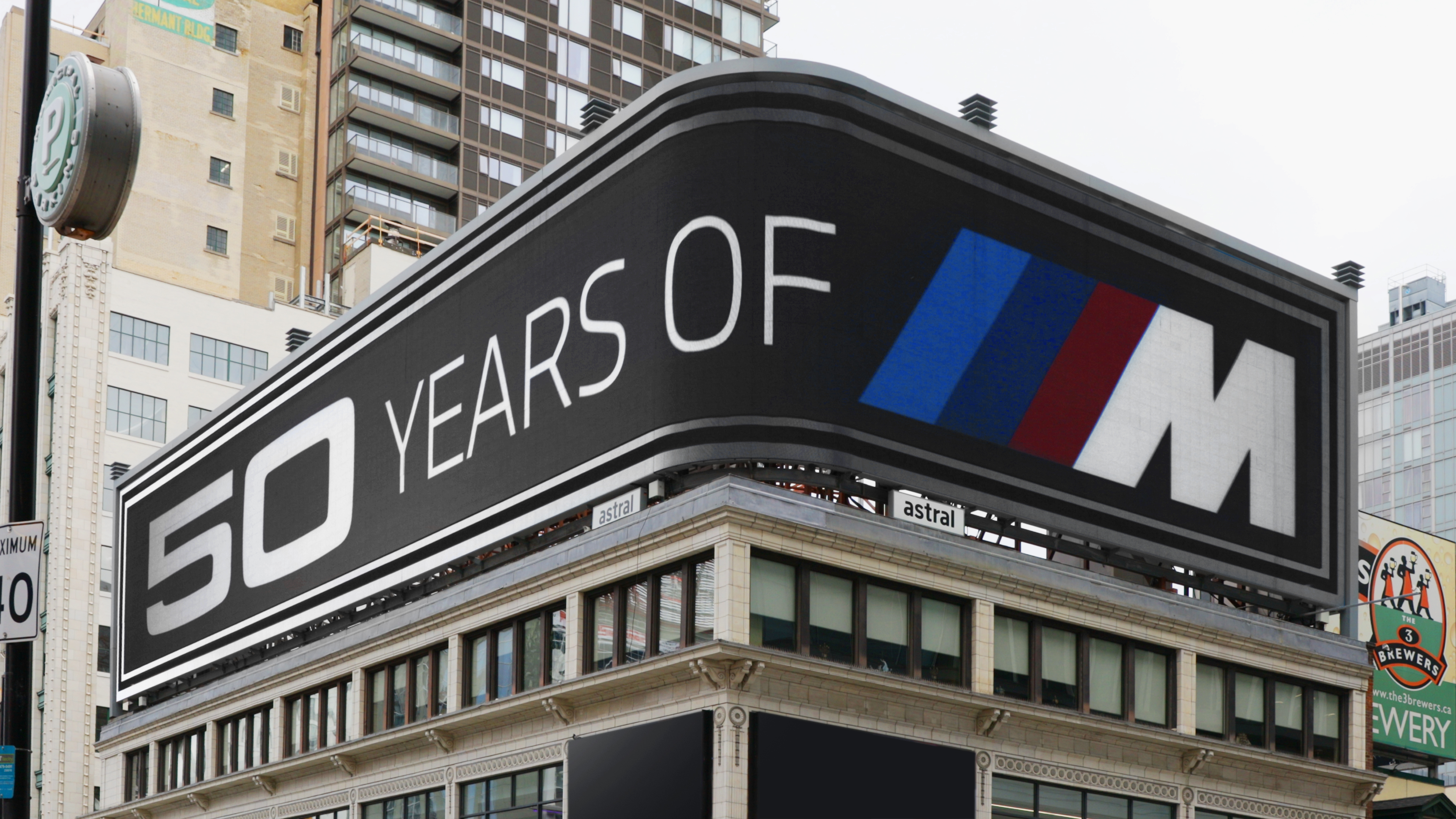 “BMW celebrates the 50th anniversary of BMW M with a “forced perspective” billboard at Canada’s busiest intersection, Yonge-Dundas Square. The ...