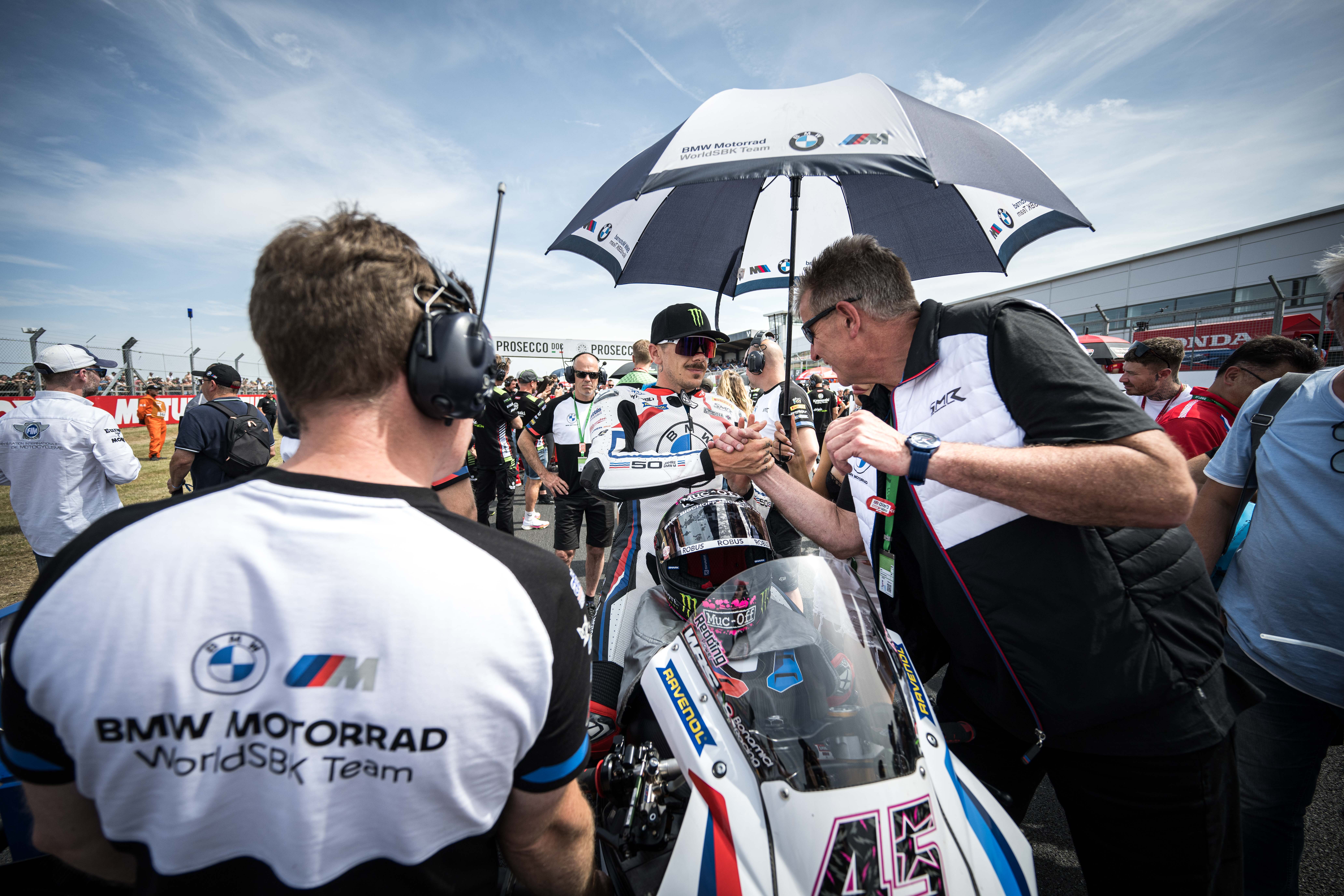 Donington Park (GBR), 17th July 2022. FIM Superbike World Championship. BMW Motorrad Motorsport. BMW Motorrad WorldSBK Team, #45 BMW M 1000 RR, Scott Redding (GBR), Dr. Markus Schramm, Head of BMW Motorrad.