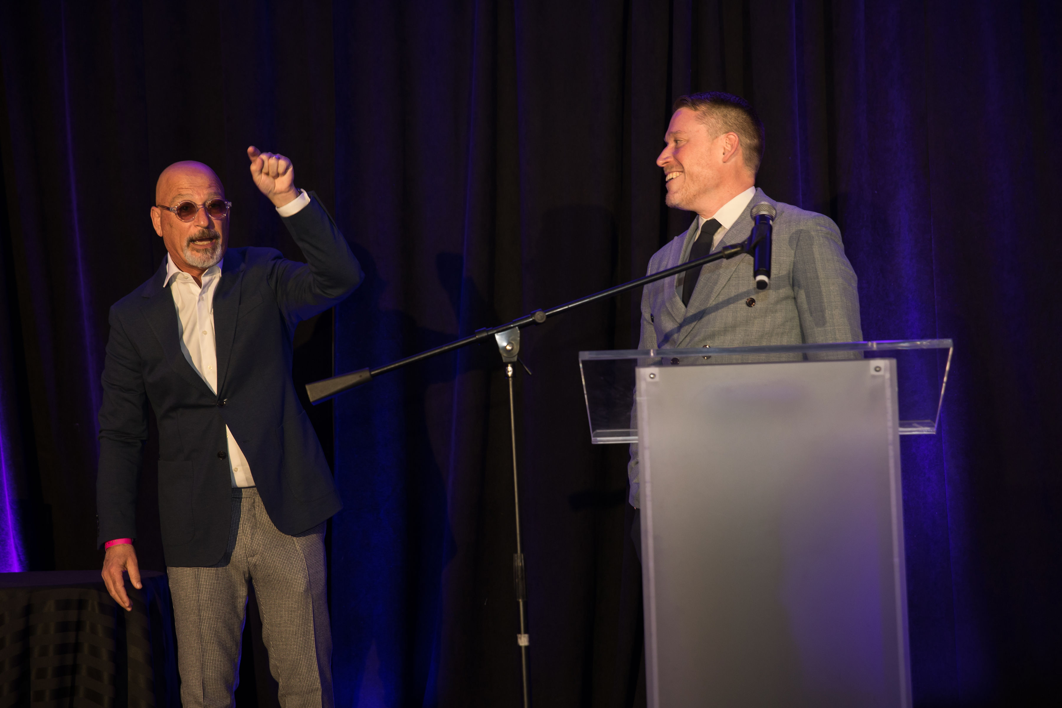 Canadian comedian, Howie Mandel, host of the 2022 BMW Group Canada Retailer of the Year Awards, kids with Andrew Scott, Director, National Sales, BMW Group Canada. (03/2023)